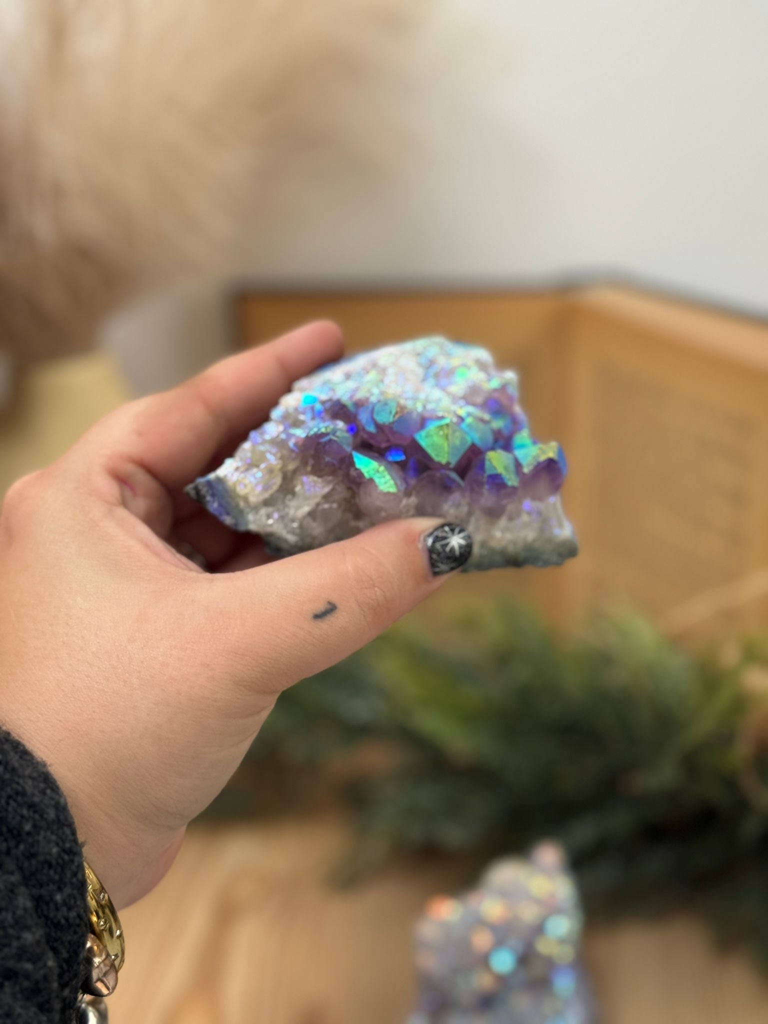 La amatista favorece la calma mental, la paz interior y la purificación energética, ayudando a liberar el estrés y a elevar la vibración del entorno. Su energía espiritual es ideal para la meditación, la sanación y la conexión con planos superiores.