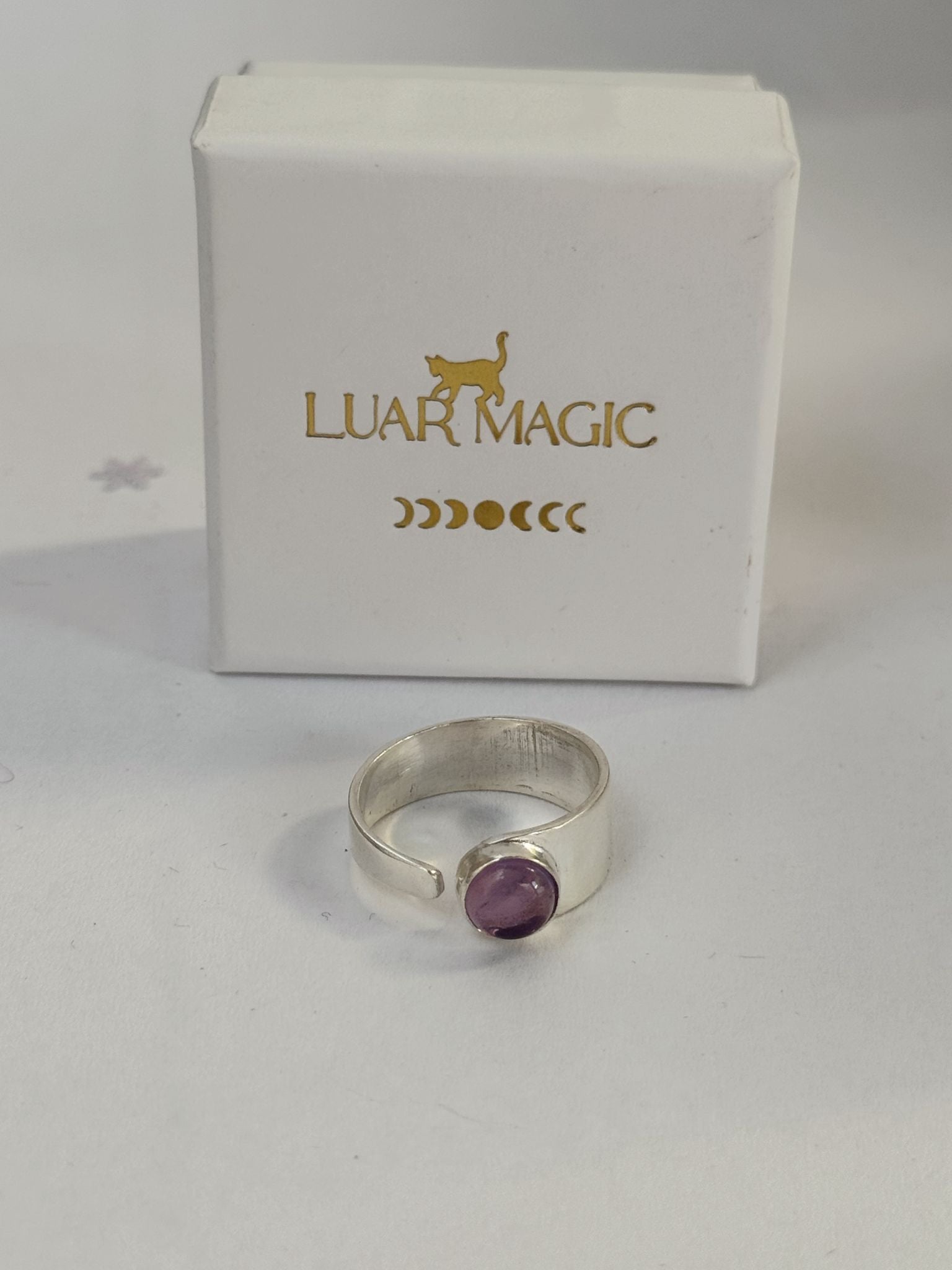 El acabado en plata 925 realza la intensidad de su color violeta y garantiza durabilidad, brillo y un estilo elegante. Cada anillo es único en matices y vetas, lo que lo convierte en una joya exclusiva y significativa.