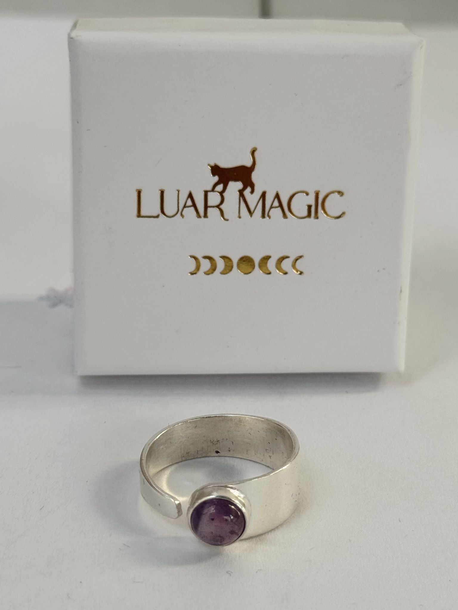 Anillo de amatista natural en plata de ley 925, con diseño ajustable que se adapta fácilmente a cualquier talla. La piedra amatista, de intenso color violeta, es conocida como la gema de la espiritualidad y la calma, favoreciendo la serenidad mental, el equilibrio emocional y la conexión interior.