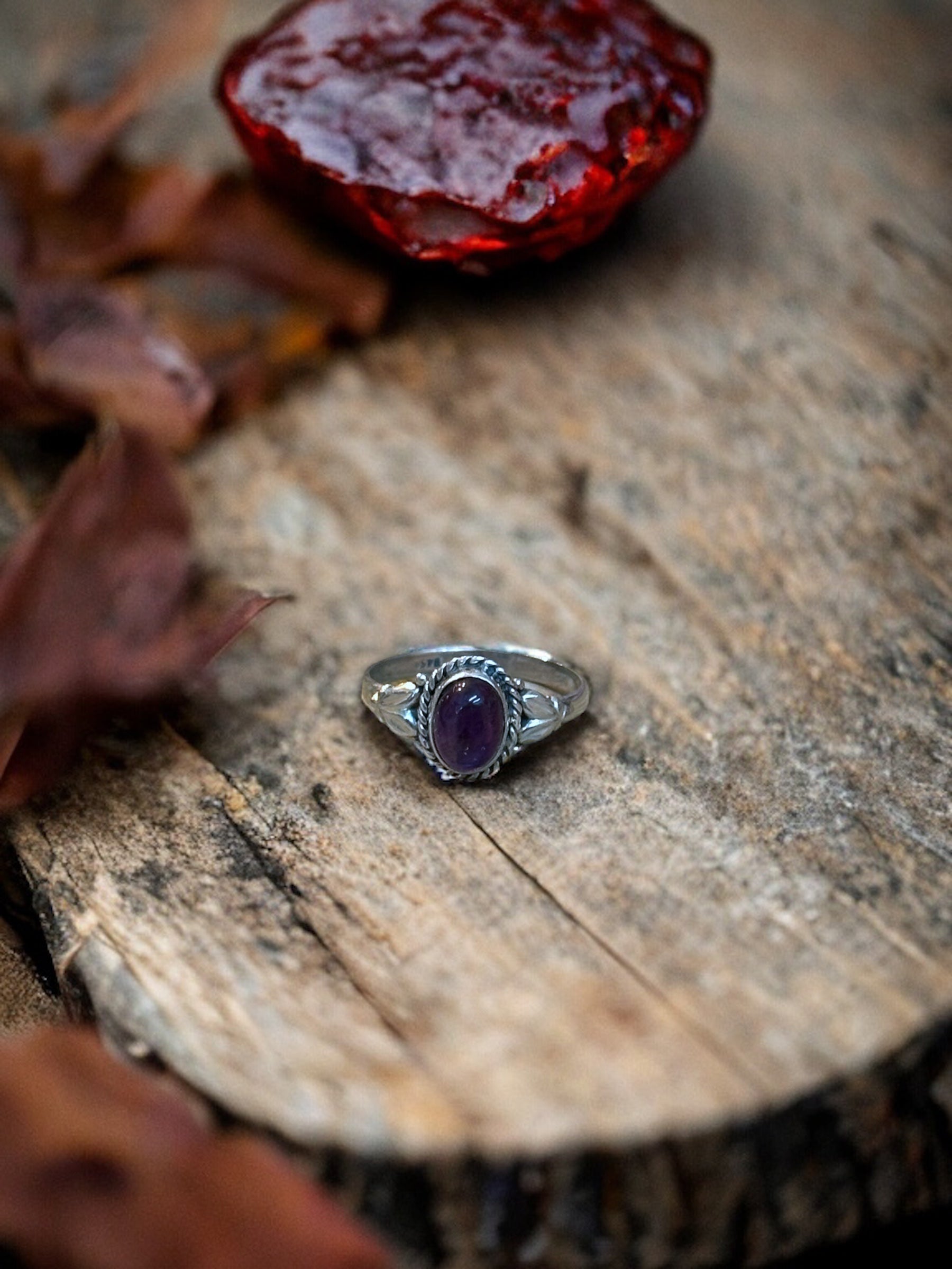 Explora la magia sublime con nuestro anillo de plata de ley 925, bautizado como "Diosa Amatista". Este tesoro se adorna con el mineral de amatista original, cuyo místico resplandor no solo añade belleza, sino que también aporta beneficios como calma mental y equilibrio espiritual.