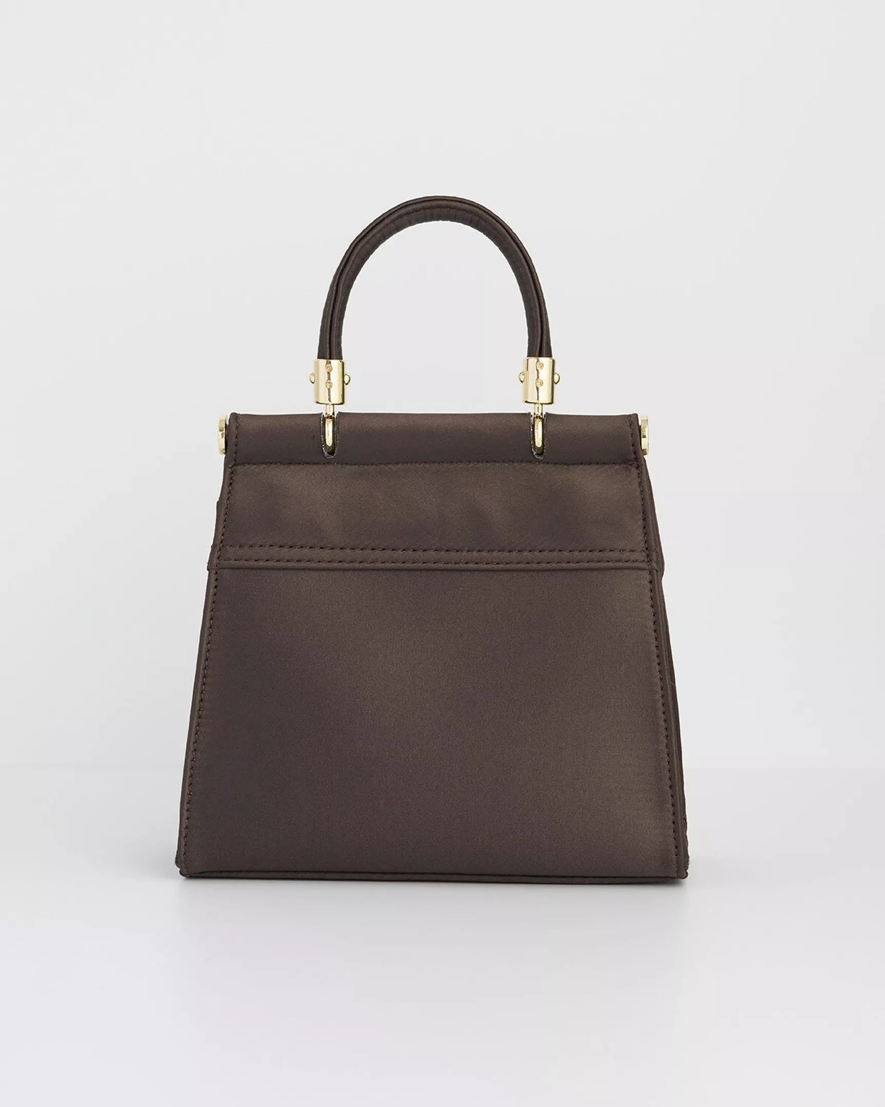 Bolso de mano de satén color carbón con bordado de lobo y luna de FABLE