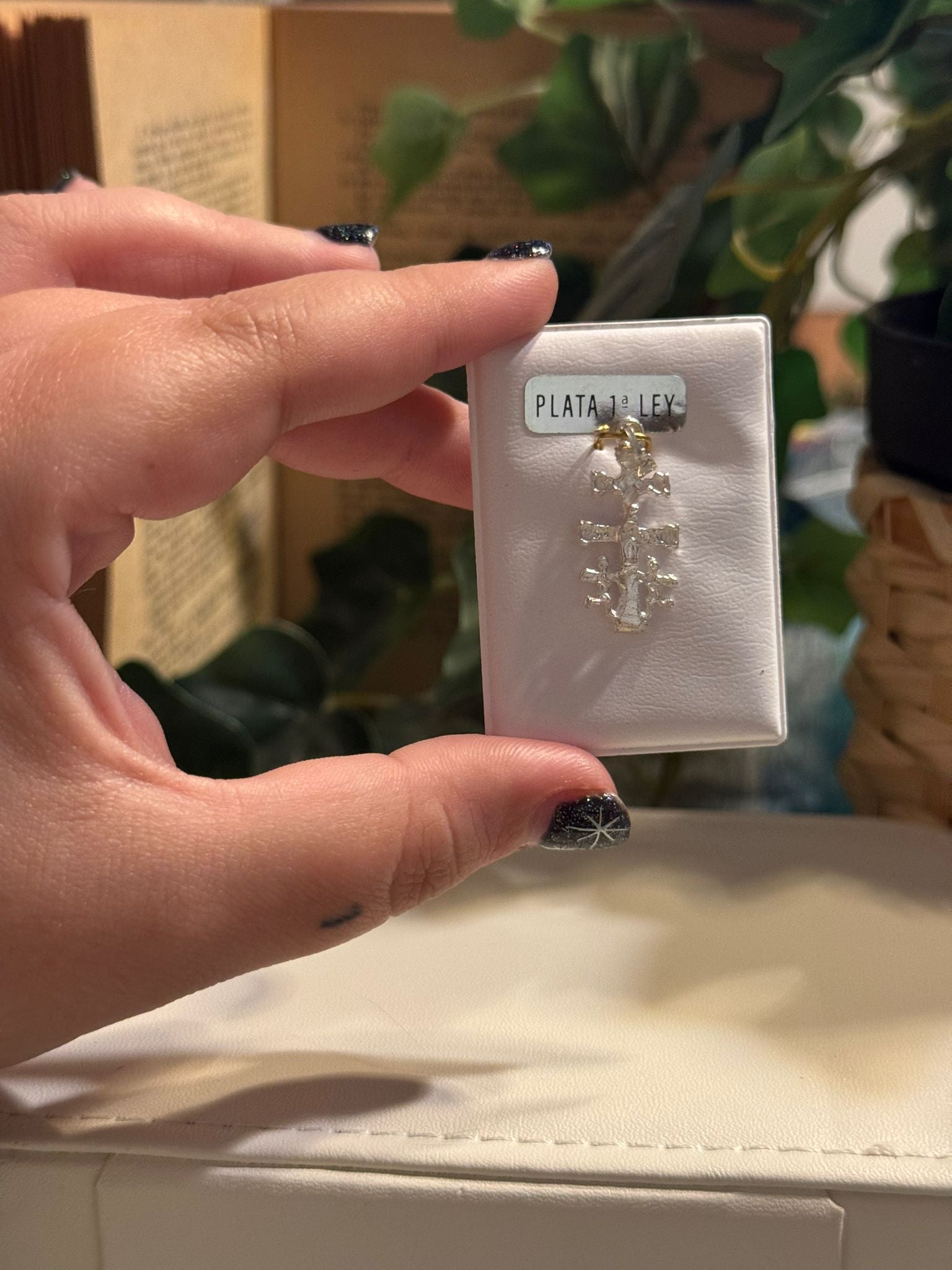 La Cruz de Caravaca en Plata 925 es un símbolo de protección y fe muy reconocido, utilizado tradicionalmente como amuleto contra energías negativas y para atraer bendiciones, fortaleza espiritual y guía divina.