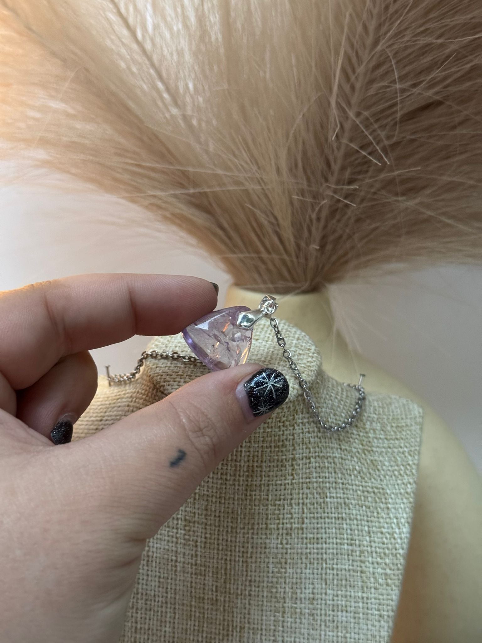 Su tono violeta, profundo y armonioso, transmite paz y purificación, mientras que el engarce en plata 925 realza su belleza natural y aporta un acabado sofisticado y duradero. Es una pieza ideal para llevar a diario o para acompañar prácticas de meditación y bienestar.