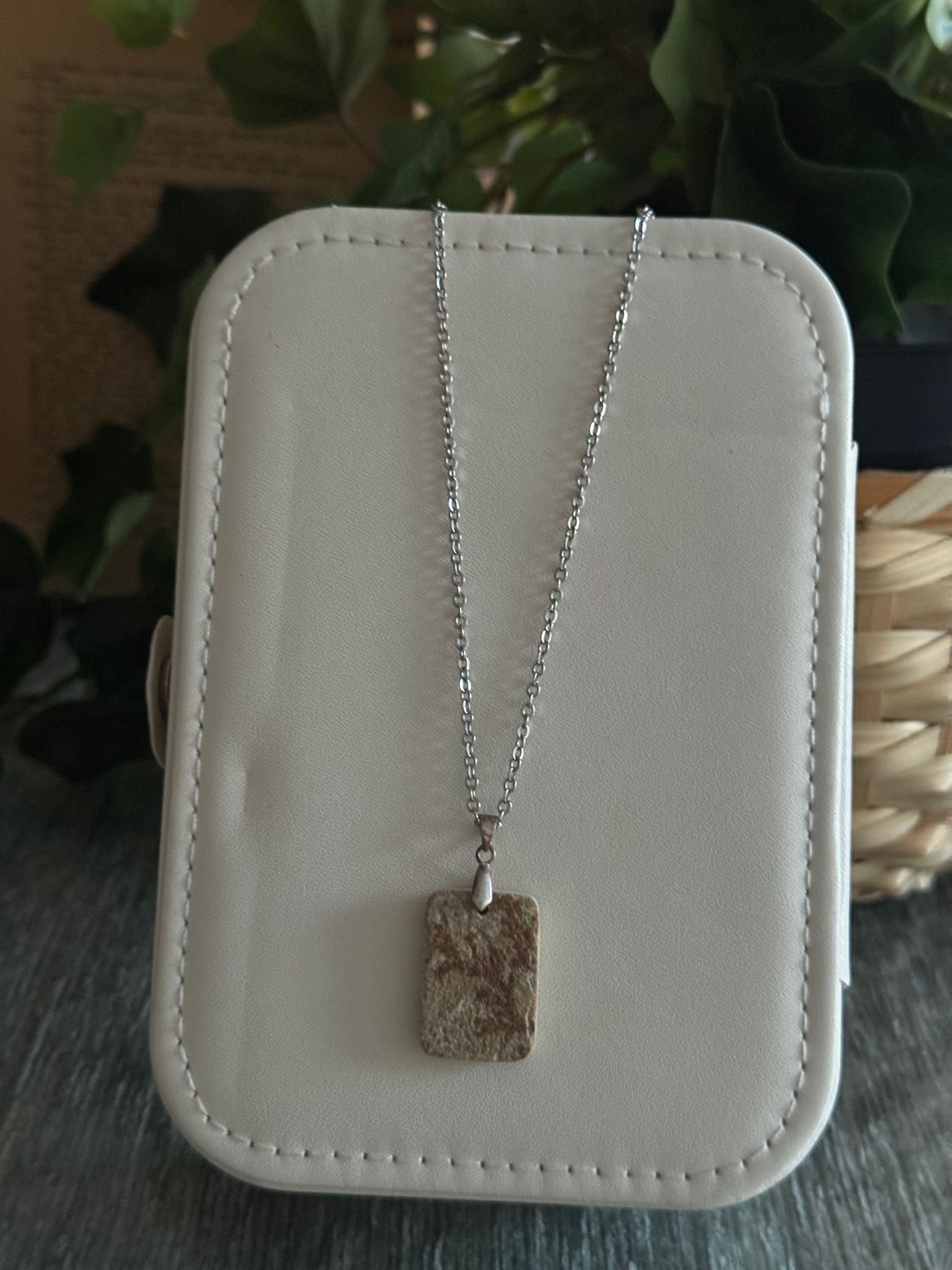 Materiales: Coral Fósil natural + cadena de acero inoxidable.