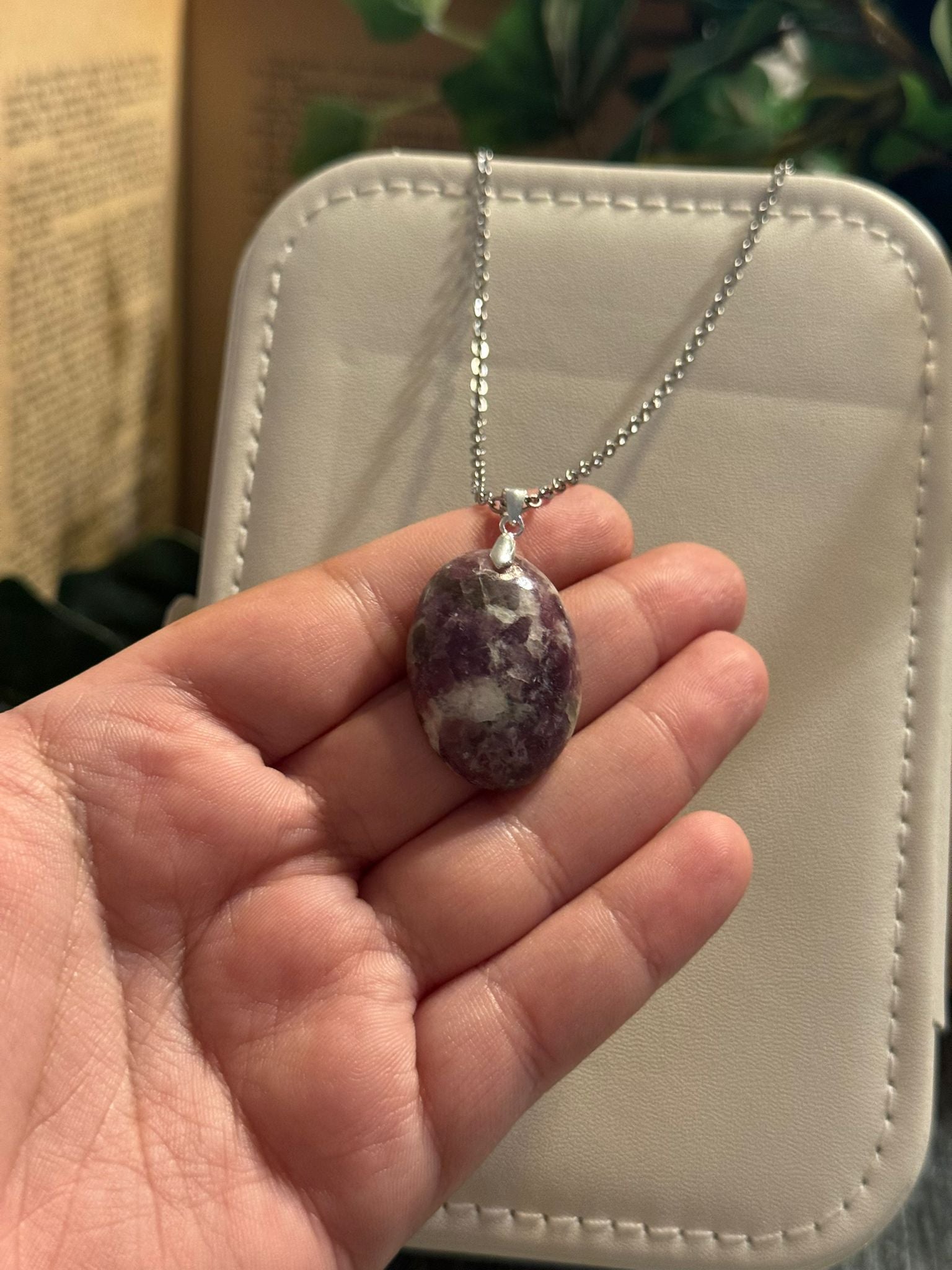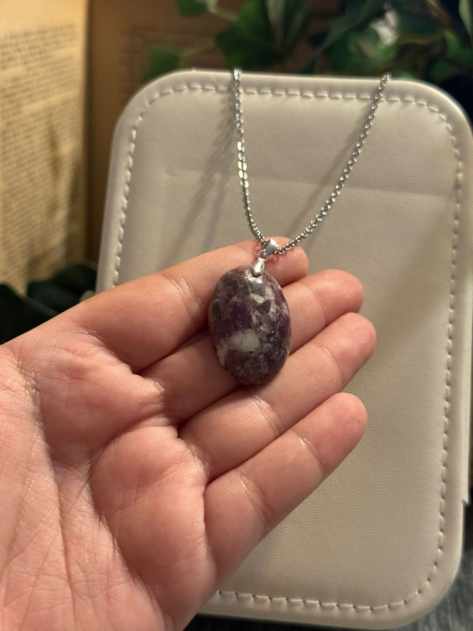 El Colgante de Lepidolita en Plata 925 es una joya calmante y llena de energía armonizadora. La lepidolita, conocida por sus tonos lilas suaves y su brillo delicado, es una de las piedras más apreciadas para reducir la ansiedad, equilibrar emociones y aportar serenidad profunda.