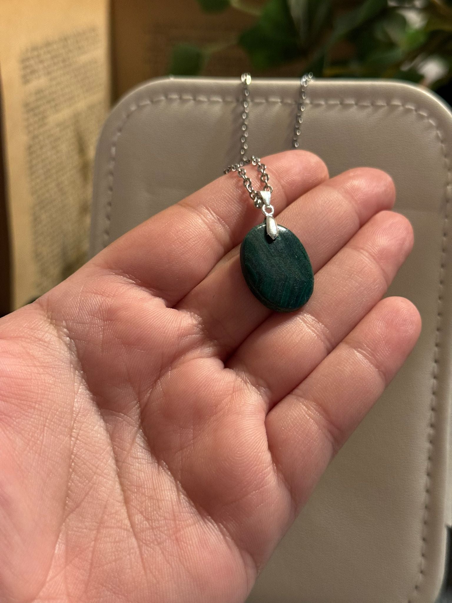 El Colgante de Malaquita en Plata 925 es una joya poderosa y elegante, elaborada con malaquita natural reconocible por sus vetas onduladas en tonos verdes intensos. Cada pieza es única y refleja la belleza orgánica de este mineral tan especial.