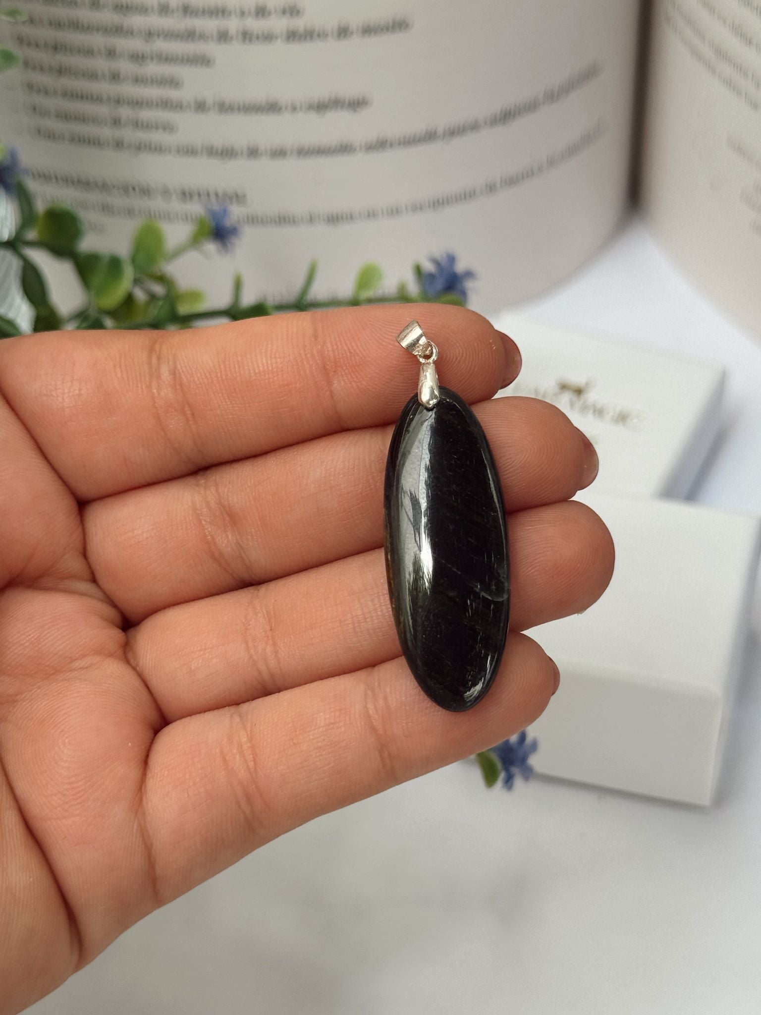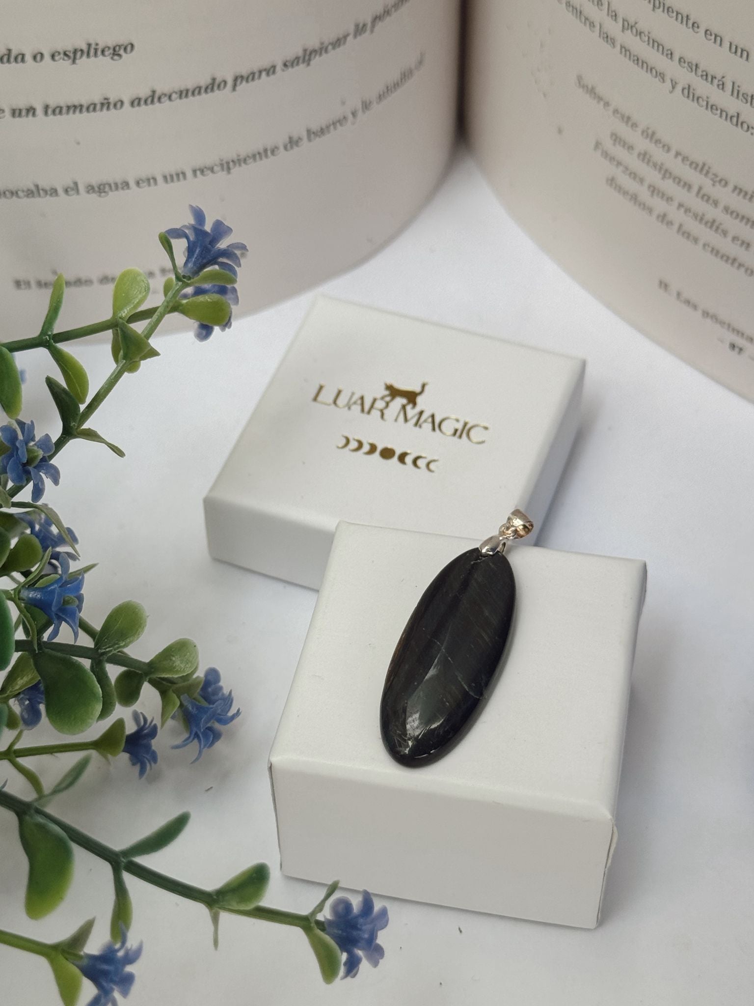 La plata de ley 925 realza los destellos del mineral y garantiza durabilidad y brillo en cada pieza. Un colgante lleno de simbolismo, perfecto para el uso diario o como amuleto personal de protección y claridad.