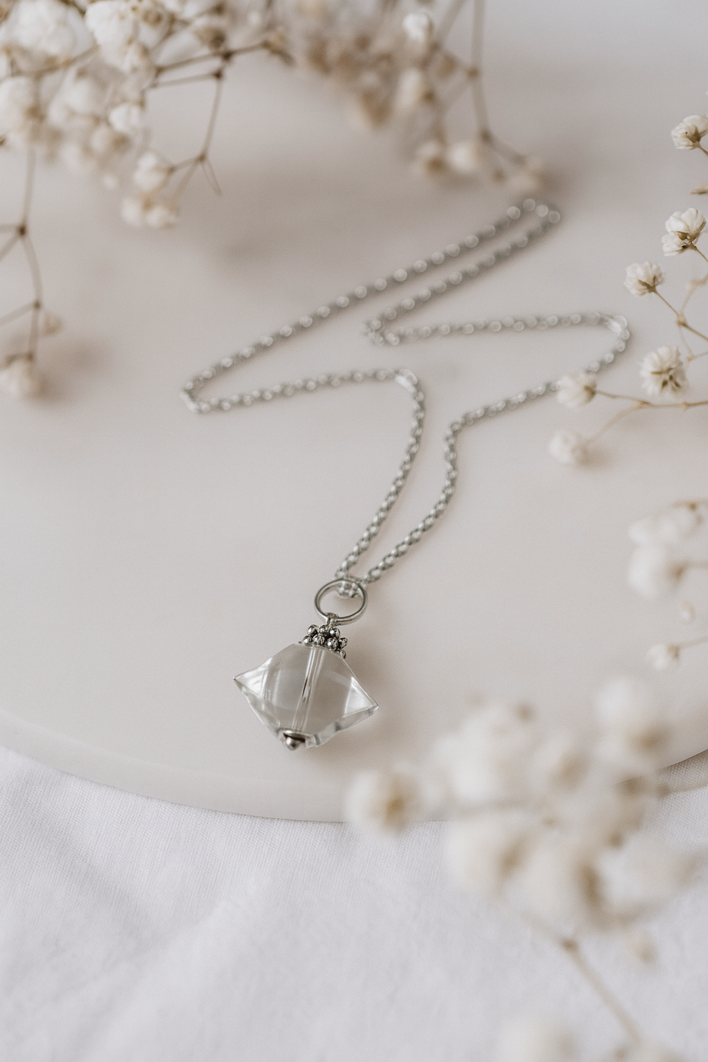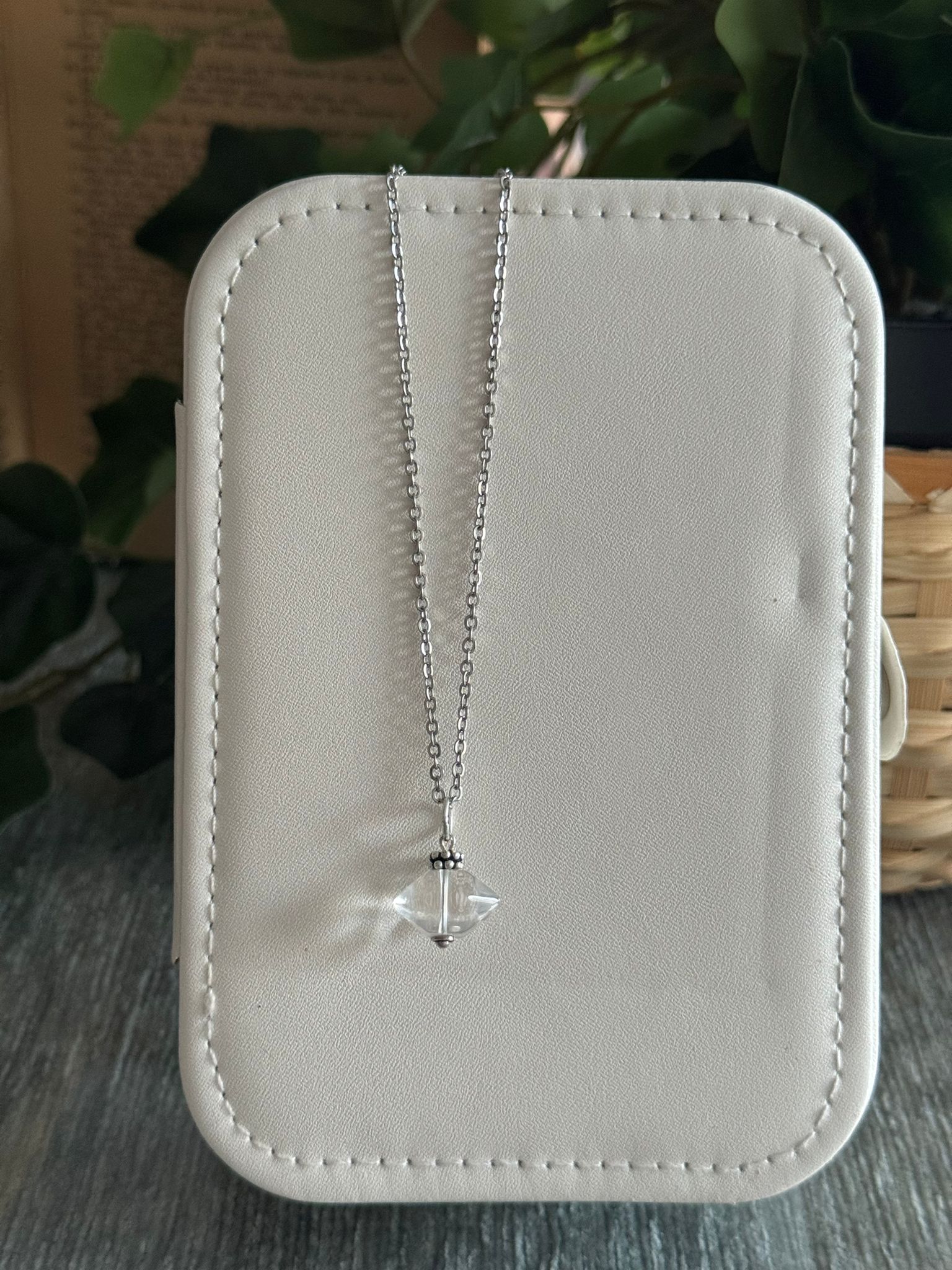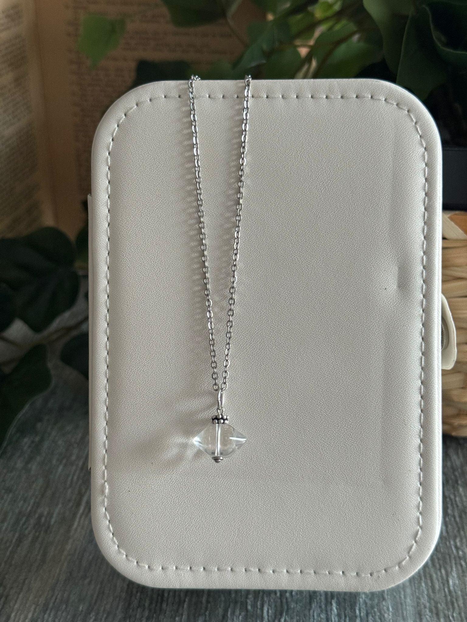 Este colgante está elaborado con un cristal Herkimer natural, también conocido como “diamante de Herkimer” por su brillo y pureza. De forma biterminada y montado con una delicada cadena plateada, este amuleto no solo embellece, sino que actúa como un canal energético de altísima vibración, ideal para quienes buscan claridad, conexión espiritual y despertar de dones.