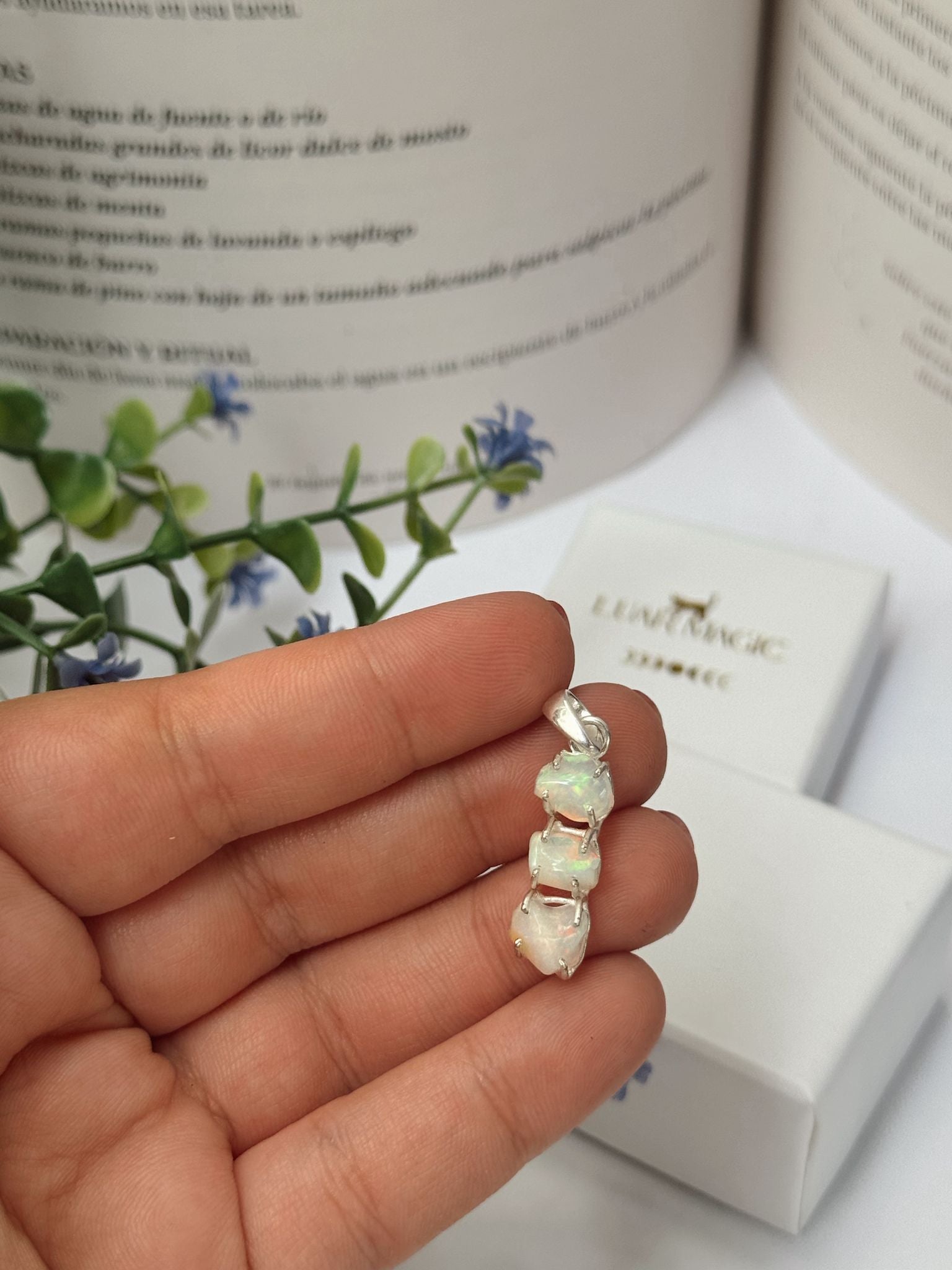 Este colgante está elaborado con un ópalo natural engarzado en plata de ley, manteniendo su belleza cruda y su fulgor cambiante