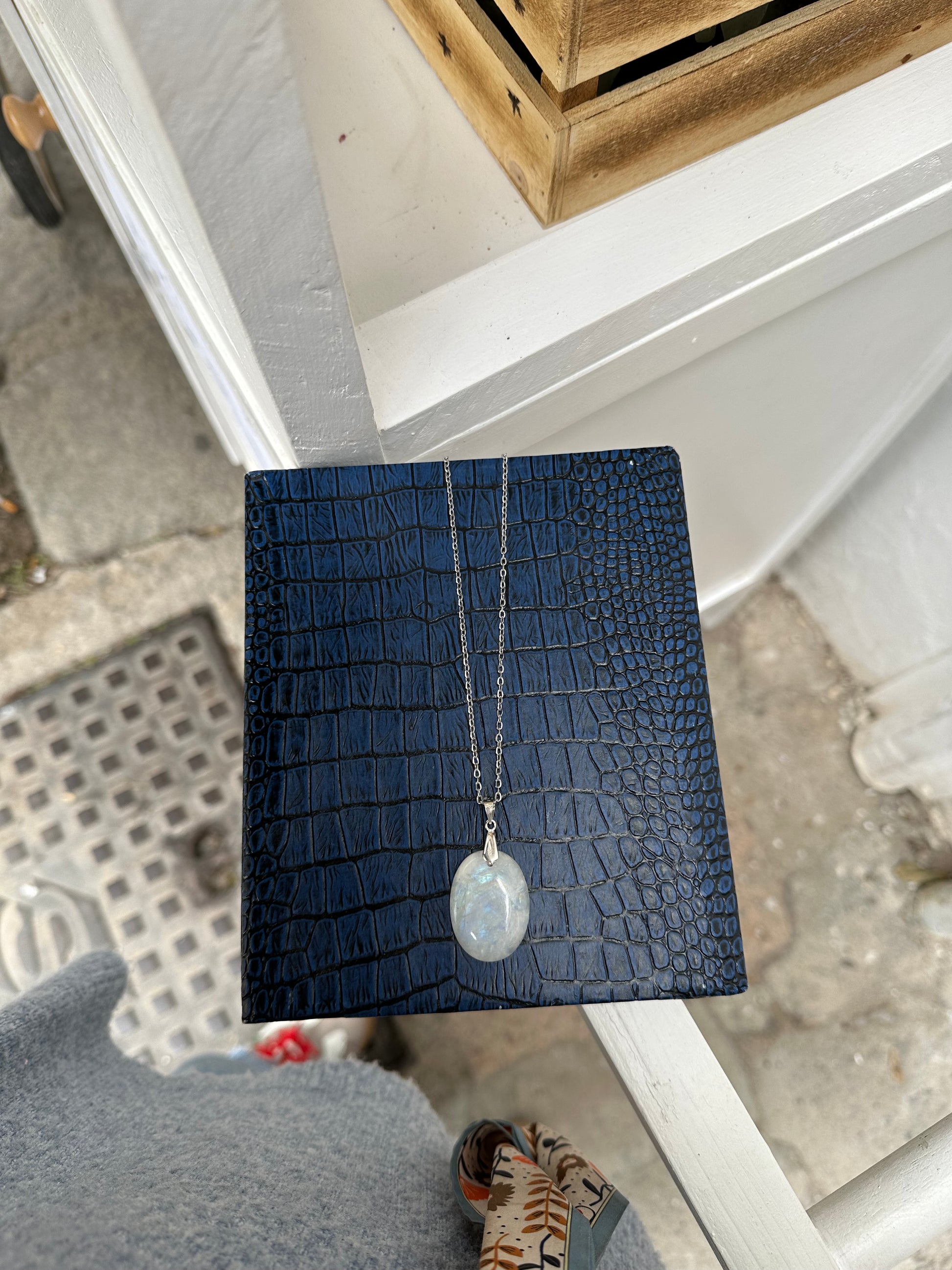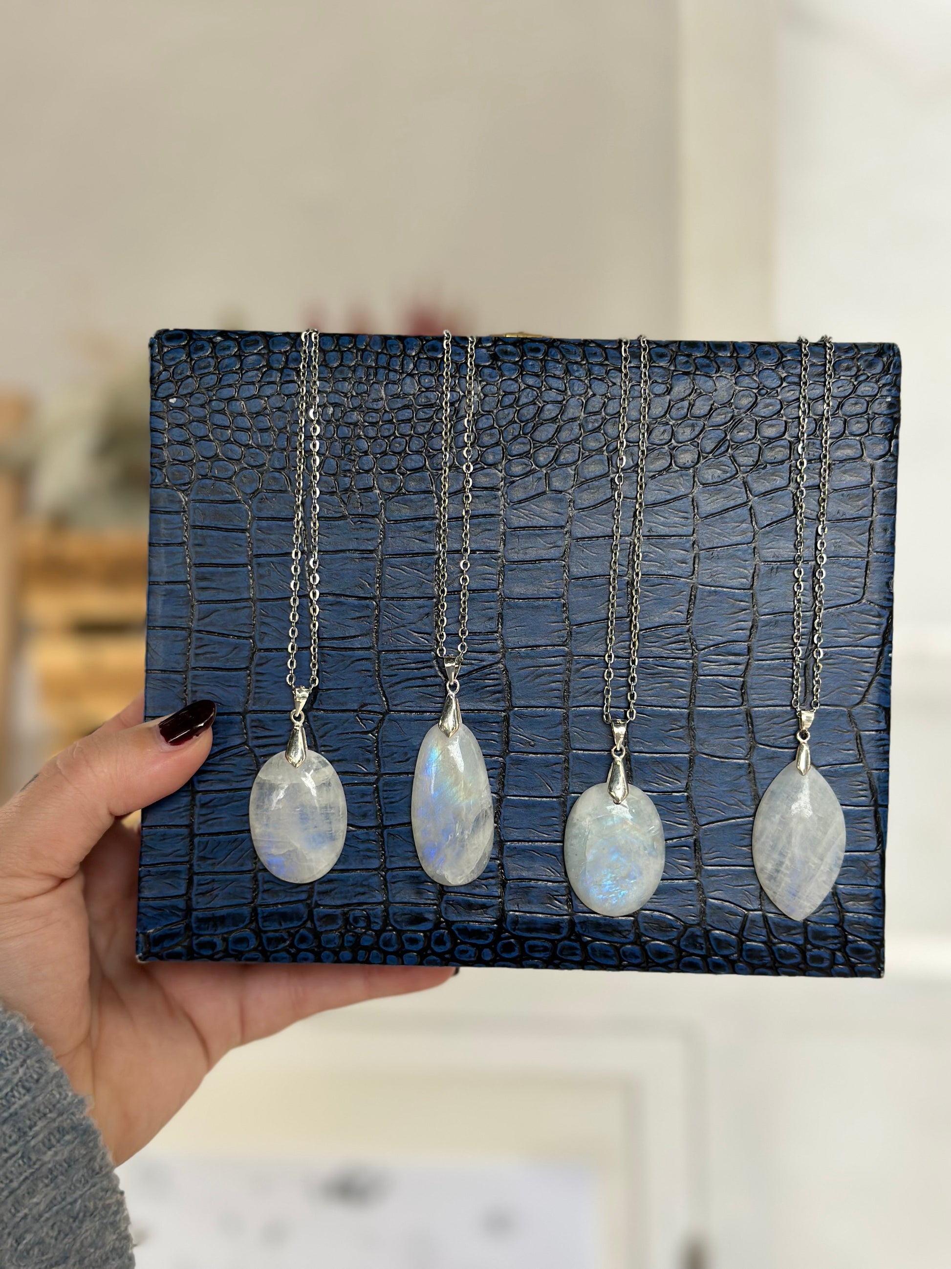 Es importante tener en cuenta que, al ser un mineral natural, cada colgante puede variar en tamaño y color. La piedra luna revela su singularidad, haciendo que cada joya sea una obra de arte única. Al abrazar esta autenticidad, te sumerges en la verdadera esencia de la naturaleza, convirtiendo tu colgante en una expresión individual de estilo y energía positiva. Descubre la magia en cada matiz y deja que tu joya refleje la autenticidad de tu ser. ¡Haz que tu estilo brille con la mística de la piedra luna!