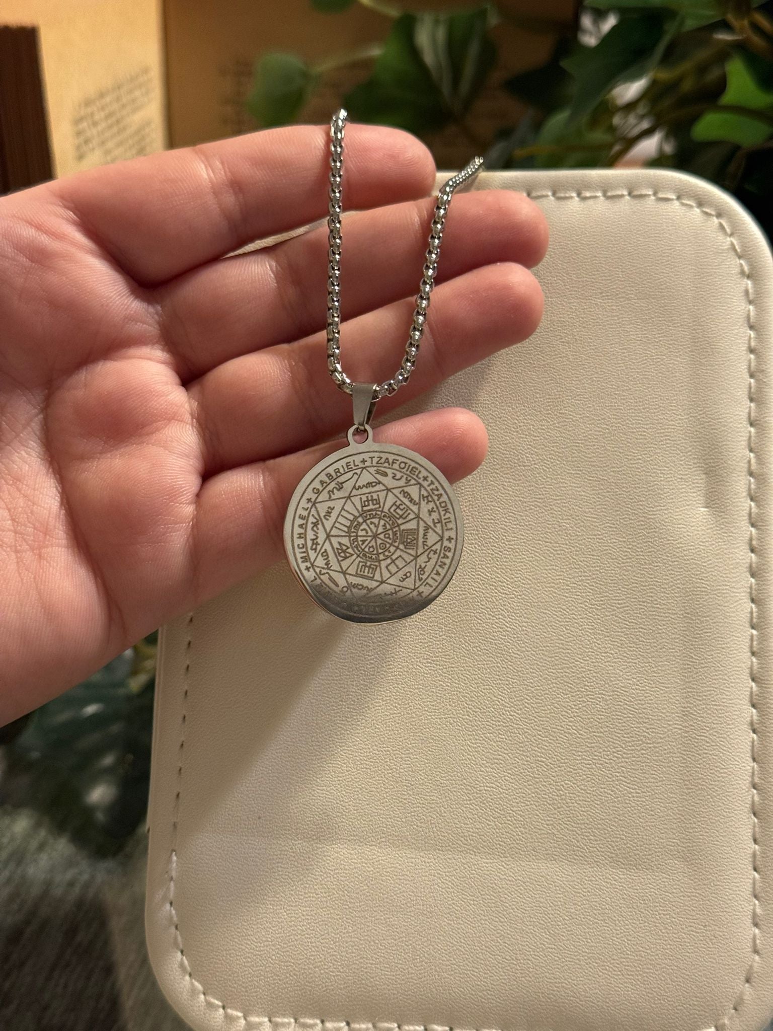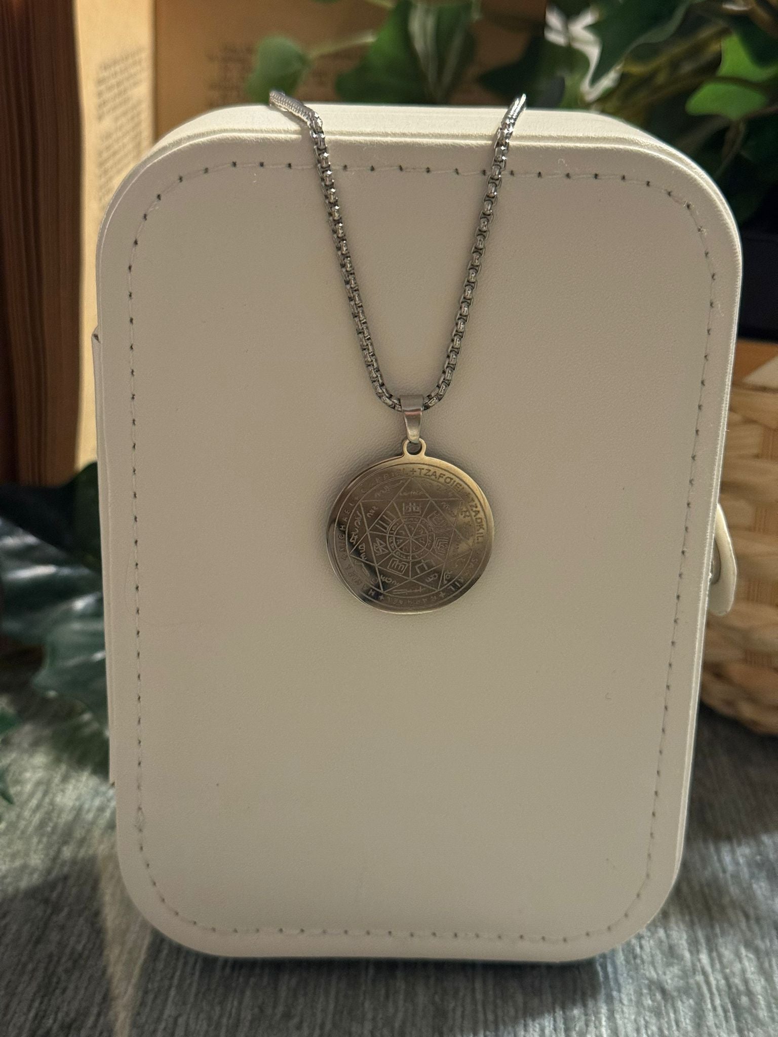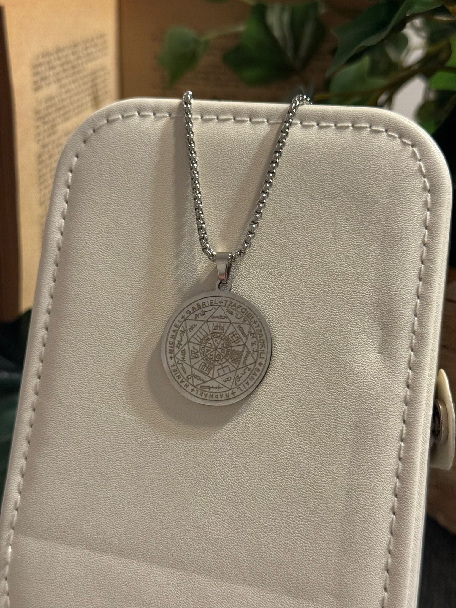 El acero inoxidable garantiza una pieza resistente, duradera y perfecta para uso diario, manteniendo su brillo y simbolismo intactos. Es un colgante ideal para quienes buscan conexión espiritual, protección elevada y equilibrio energético.