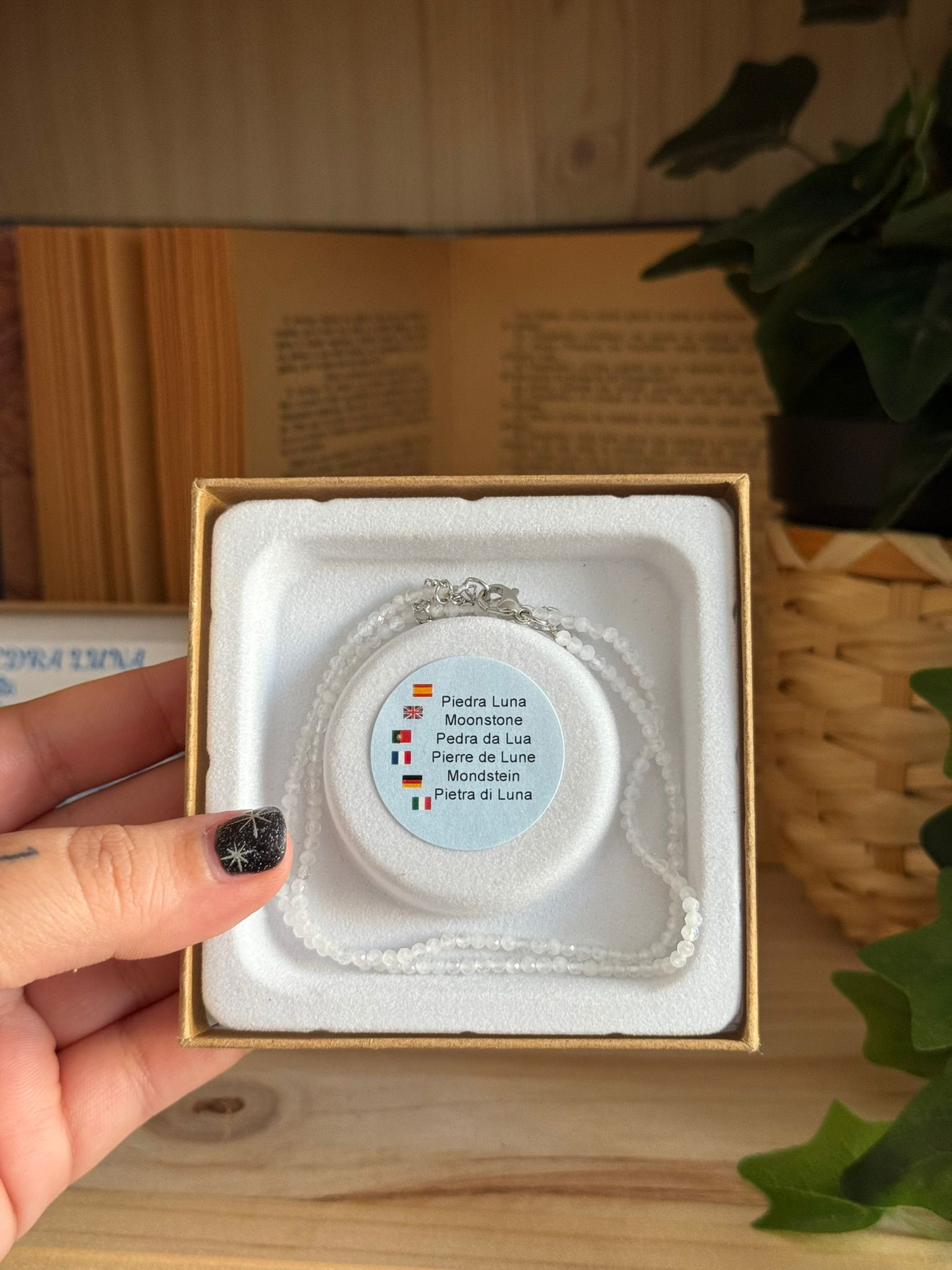 El Collar y Pulsera de Piedra de Luna están elaborados con piedra natural de calidad extra, reconocida por su brillo nacarado y su energía suave y femenina. Considerada una piedra de intuición, amor y equilibrio emocional, la piedra de luna conecta con los ciclos naturales y la energía de lo divino femenino.