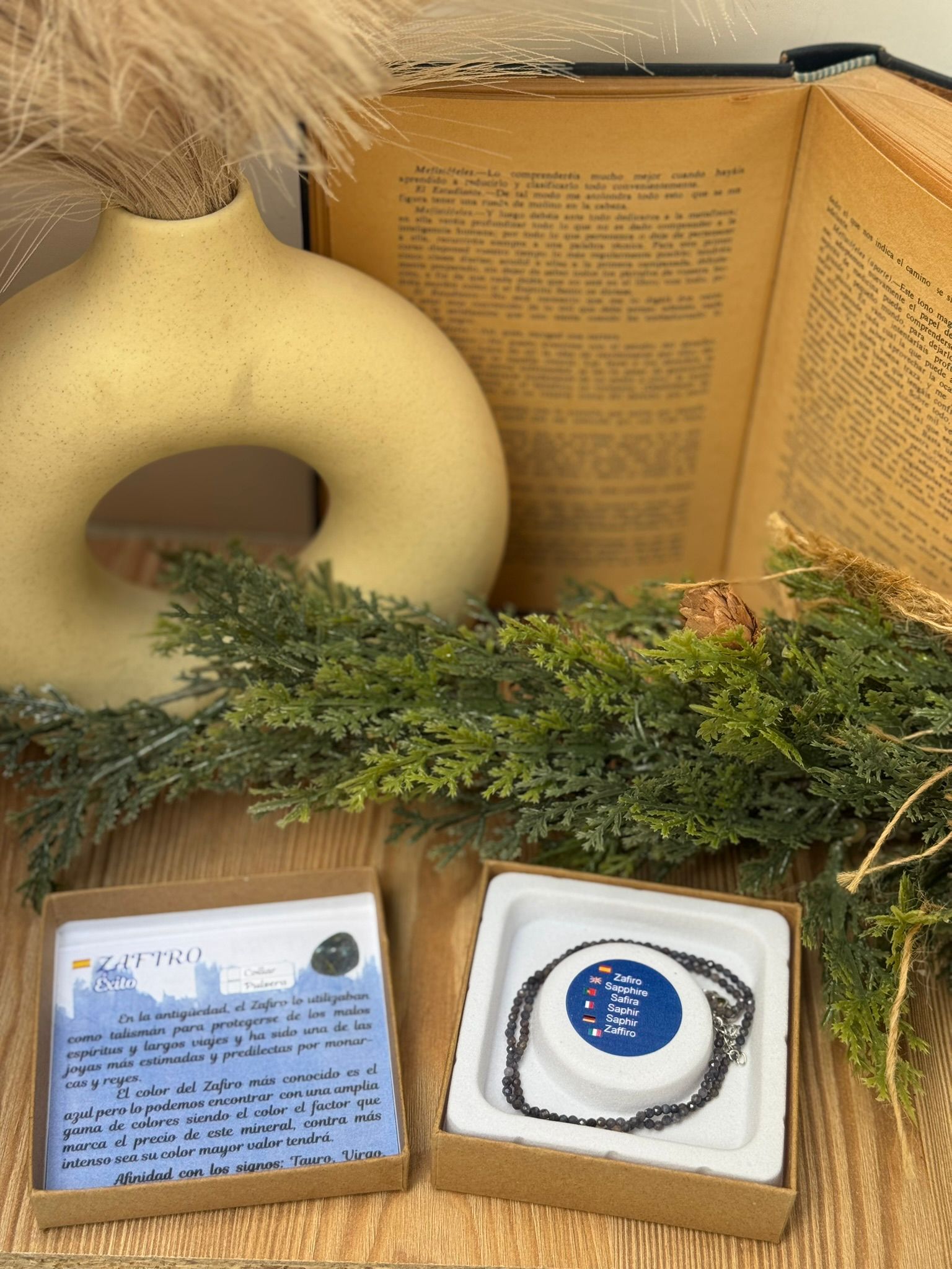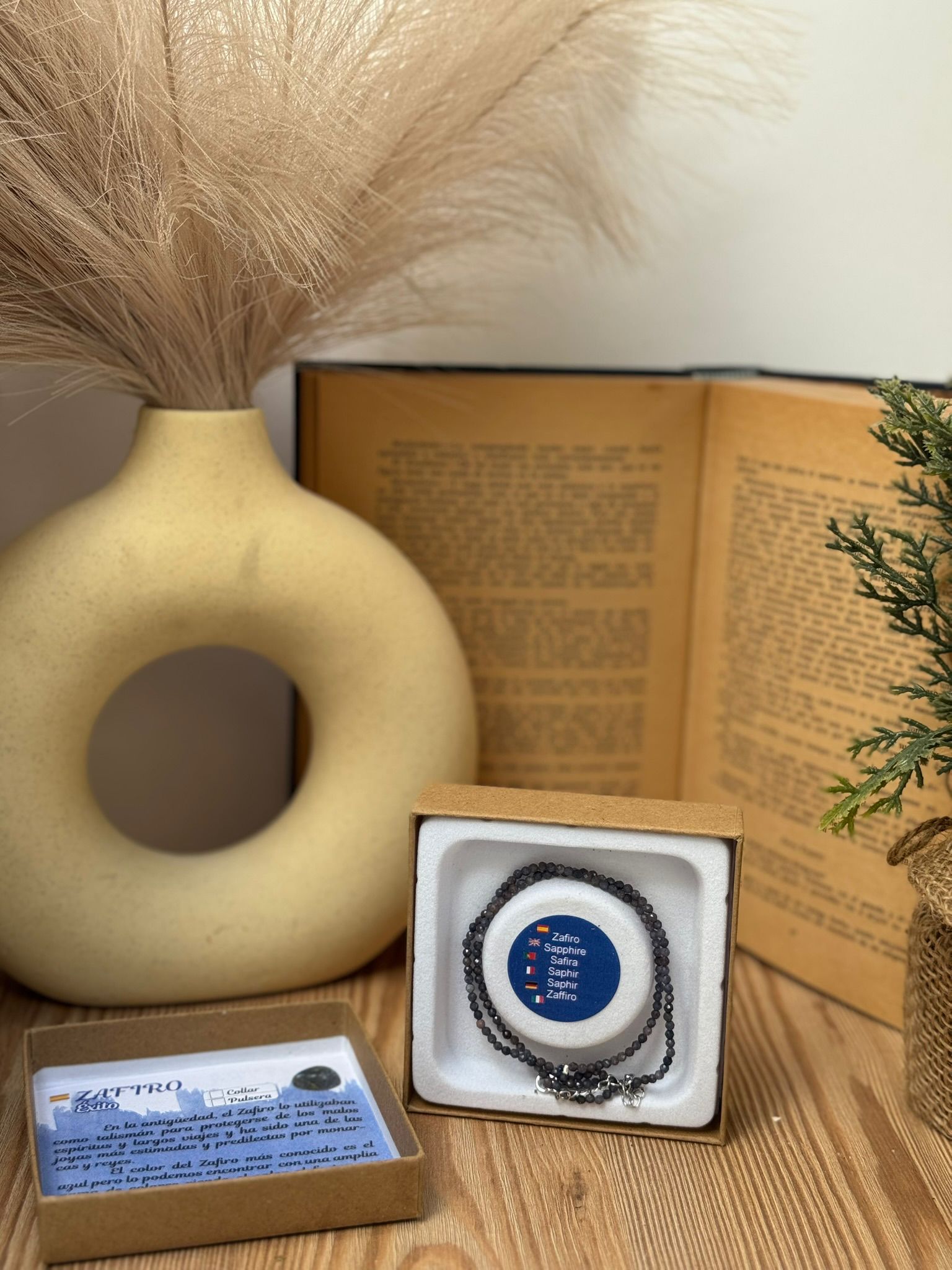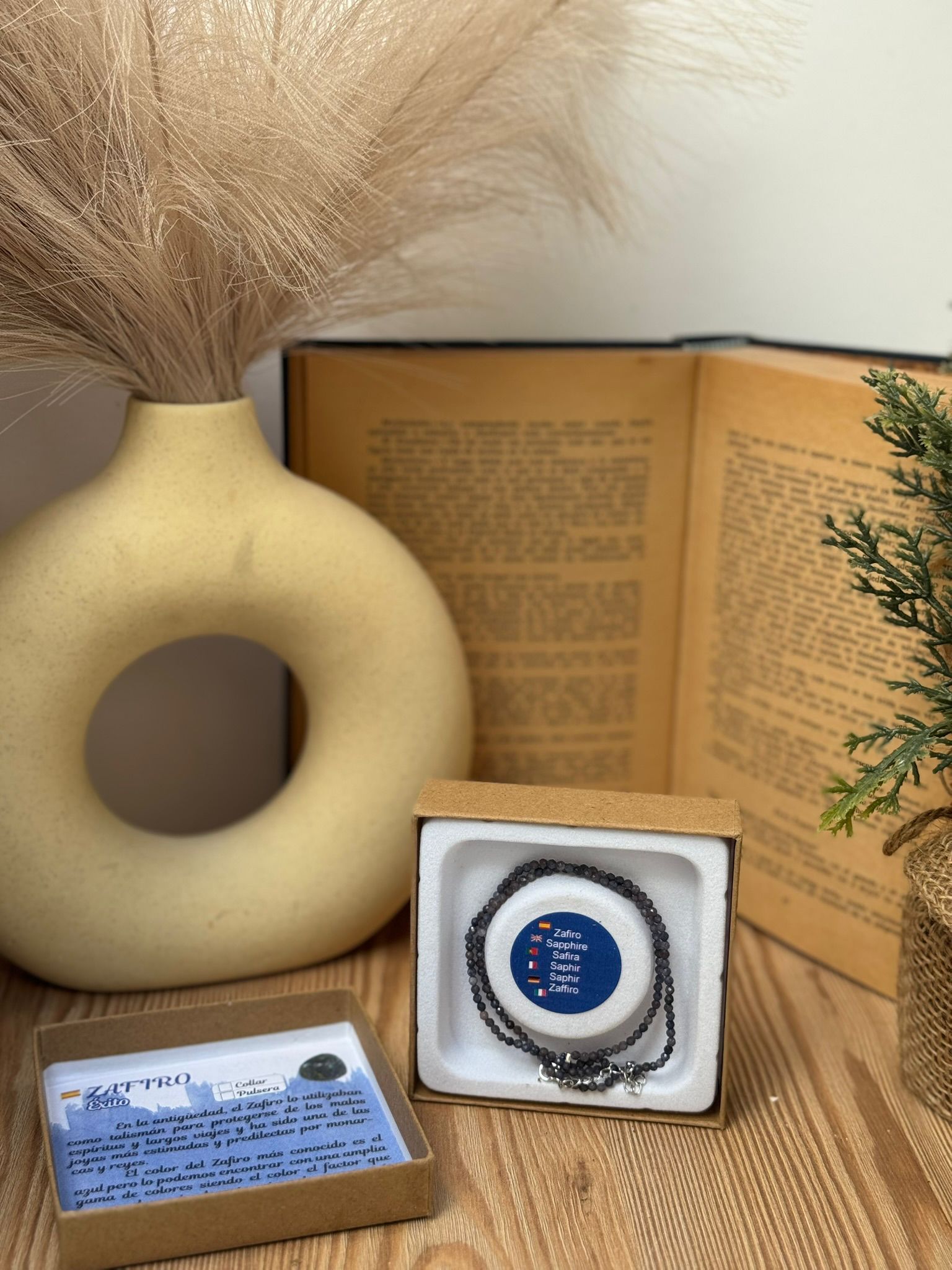 El Collar y Pulsera de Zafiro están elaborados con piedra natural de calidad extra, símbolo de sabiduría, pureza y protección espiritual. El zafiro es una piedra preciosa que eleva la mente, fortalece la intuición y promueve la serenidad interior, ayudando a alcanzar un estado de equilibrio y claridad.