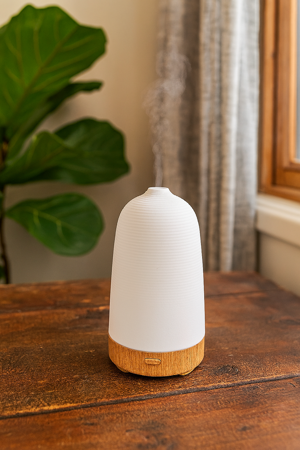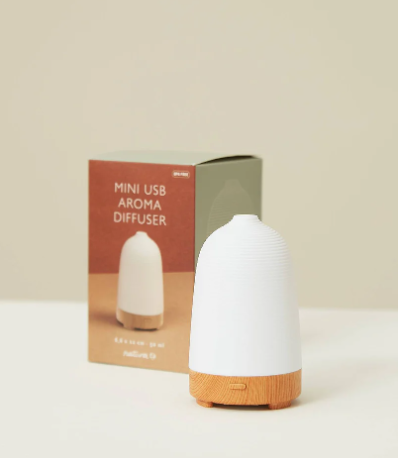 Elegante difusor de aroma con base de madera acanalada, diseñado para crear un ambiente relajante y armonioso. Incorpora luz LED que cambia de color suavemente, aportando un toque decorativo y cálido a cualquier espacio. Funciona mediante conexión USB, lo que lo hace práctico para usar en casa, la oficina o junto al ordenador.