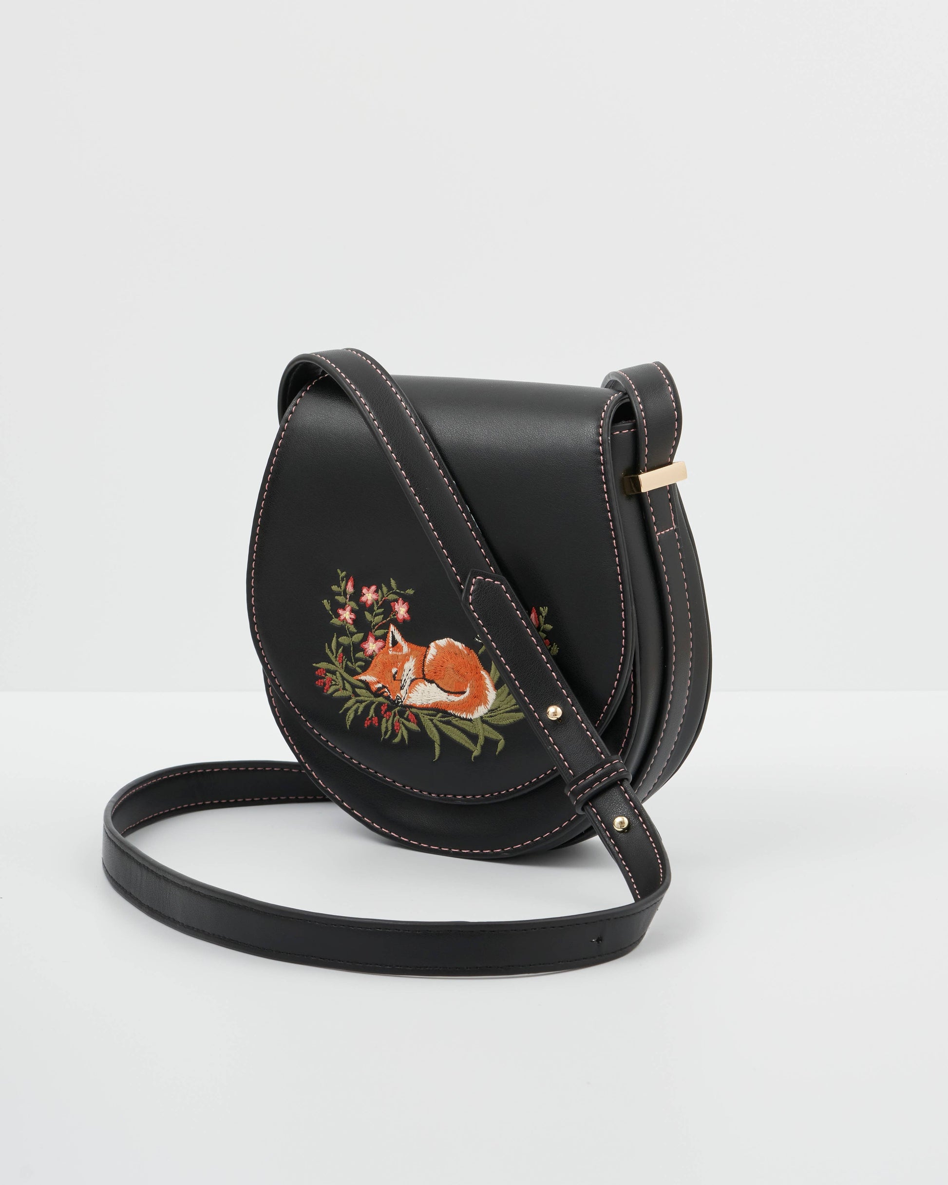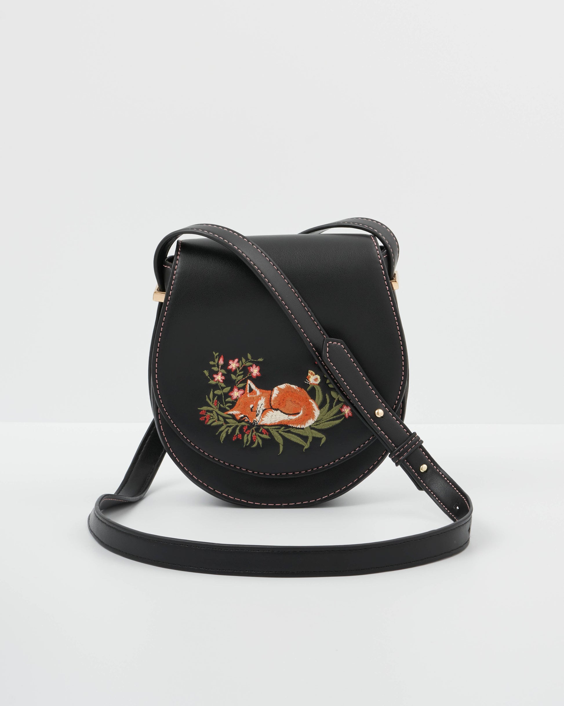 Envuélvete en la fantasía con el encantador Bolso de Silla Zorro Dormilón, un accesorio encantador que combina sin esfuerzo elegancia y comodidad. Adornado con un exquisito bordado, el adorable cachorro que duerme plácidamente en el frente seguramente evocará sentimientos de tranquila felicidad, invitándote a un mundo de serenos sueños diurnos. Elaborado con cuero vegano suave y flexible, este bolso no solo se siente lujoso, sino que también es un testimonio de la moda consciente. Muestra este bolso junto con la versión circular coordinada y la caja de joyas. Estas piezas crean una cautivadora viñeta de bosque en tu tienda, invitando a los clientes a abrazar el encanto de la naturaleza y la ensoñación en sus vidas.
