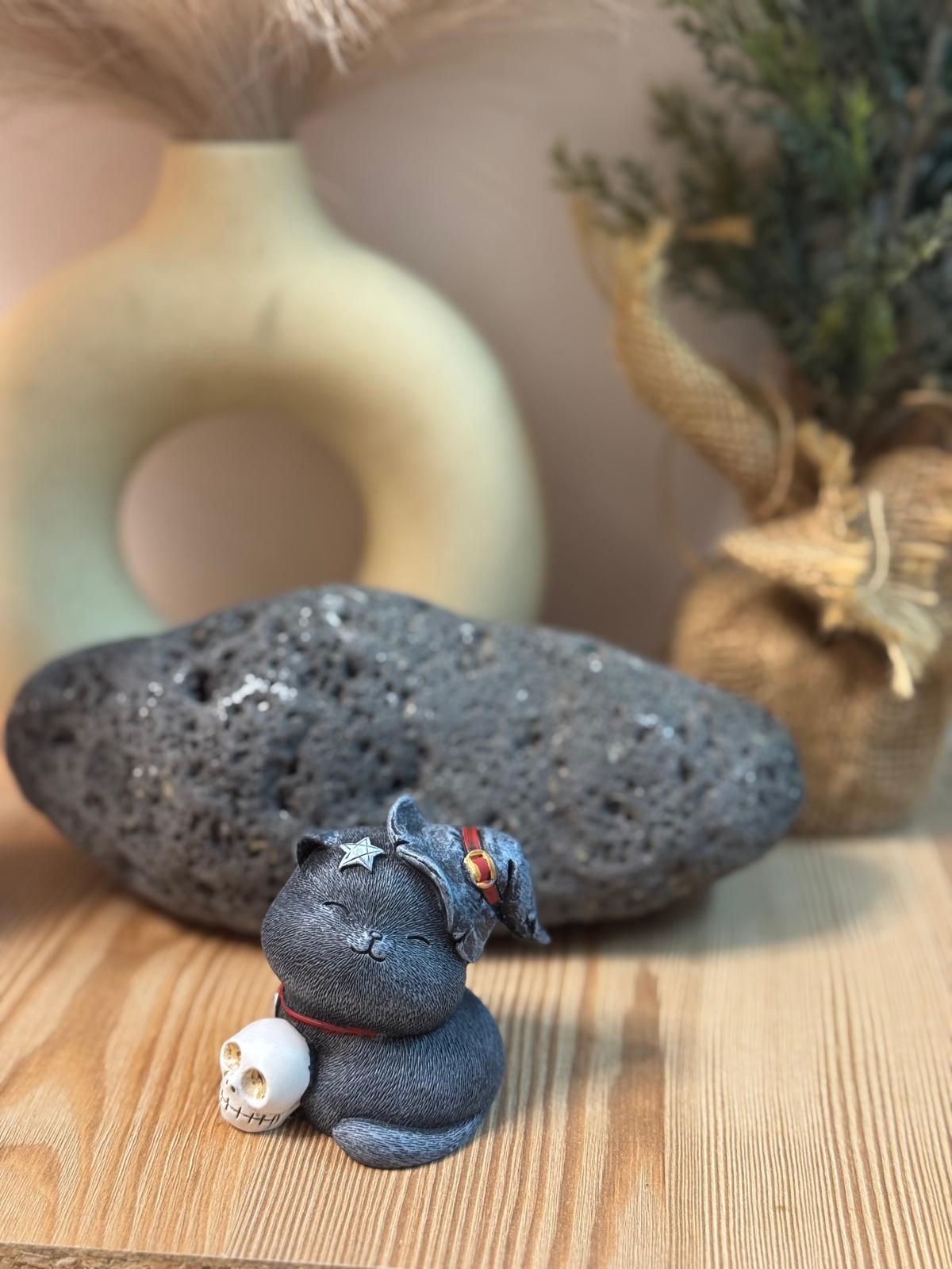 Encantadora figura de gatito bruja con calavera, un amuleto decorativo que combina la magia felina con el misterio del mundo esotérico. Representa la protección, la intuición y la conexión con lo oculto, siendo un símbolo perfecto para quienes vibran con la energía de la magia y la transformación.