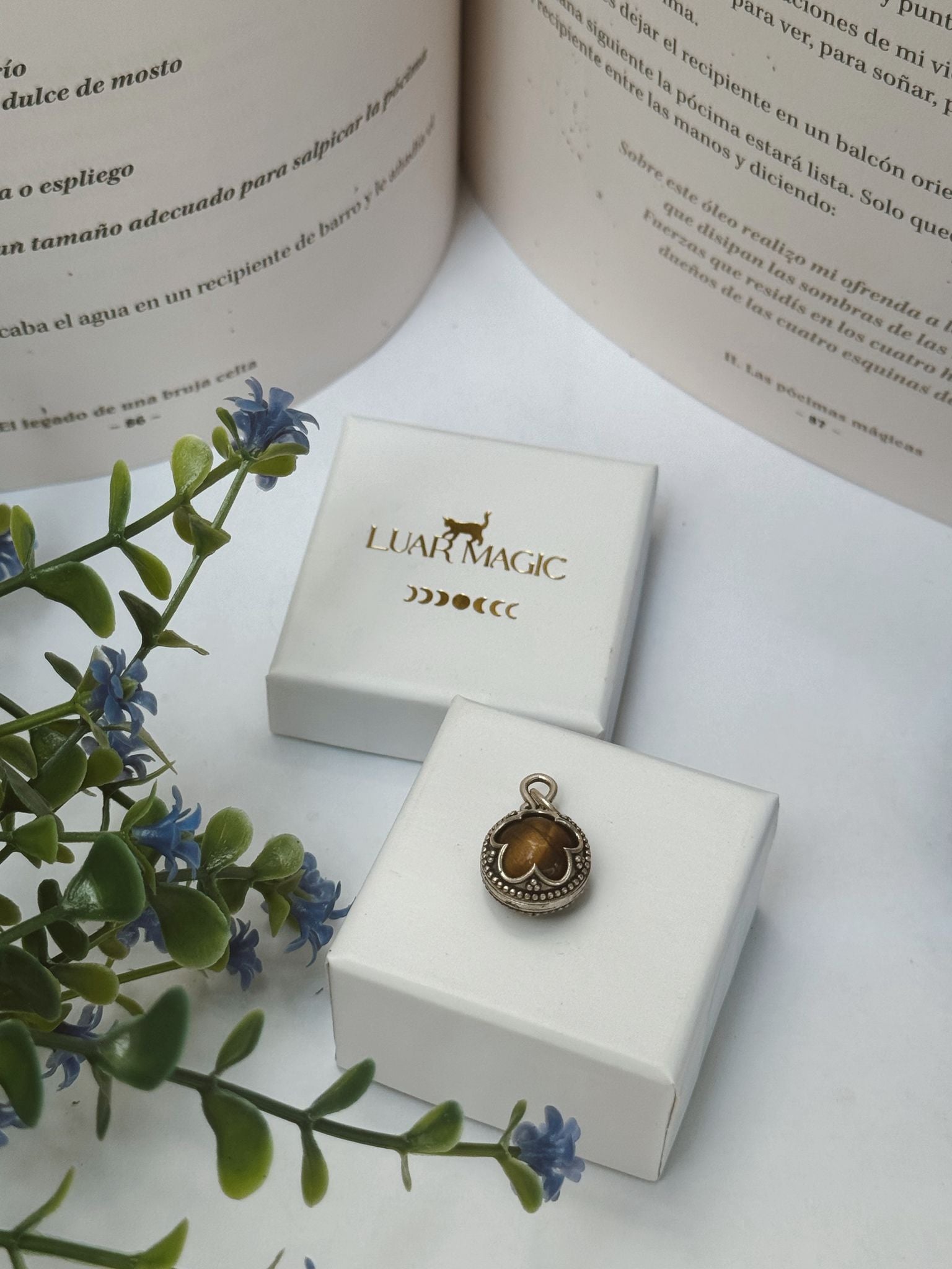 La montura en plata de ley 925 realza los tonos dorados y marrones característicos de este mineral, ofreciendo un acabado elegante y resistente. Su tamaño grande lo convierte en una joya llamativa y poderosa, perfecta para quienes buscan un amuleto protector y a la vez lleno de estilo.