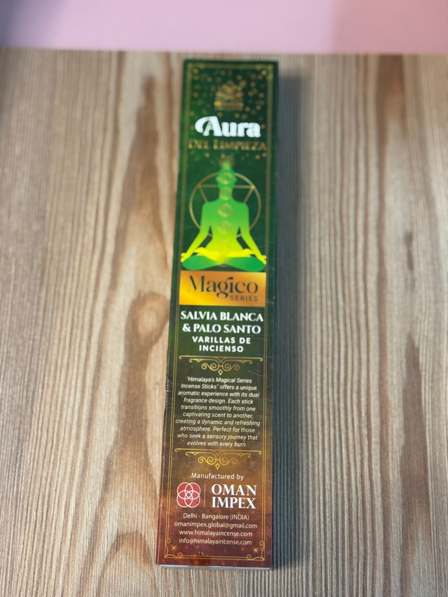 Este incienso ha sido creado para purificar el campo energético y devolver equilibrio, claridad y ligereza al aura. Su aroma combina notas frescas y limpias que ayudan a disolver cargas emocionales, pensamientos densos y vibraciones que no pertenecen a tu espacio interior.