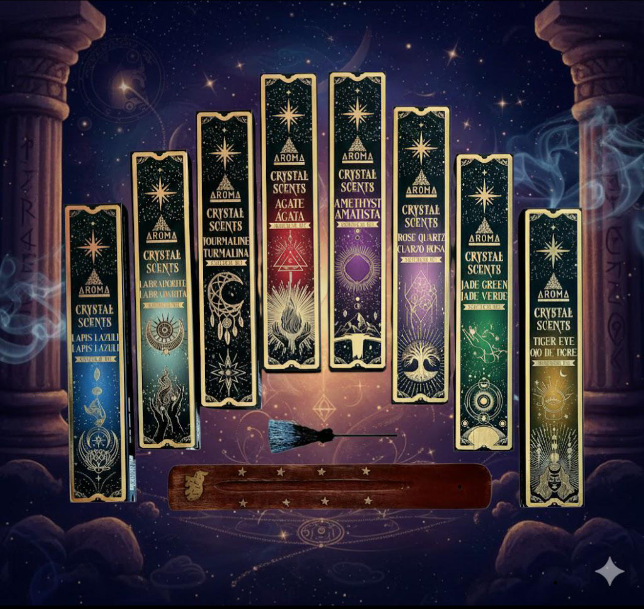 El Crystal Scents Smudge Kit reúne 12 inciensos diferentes inspirados en cristales para acompañarte en momentos de limpieza, intención, meditación o simplemente para perfumar tu espacio con una vibra especial. Cada fragancia está pensada para crear atmósferas distintas: desde calma y dulzura hasta enfoque, fuerza y armonía.