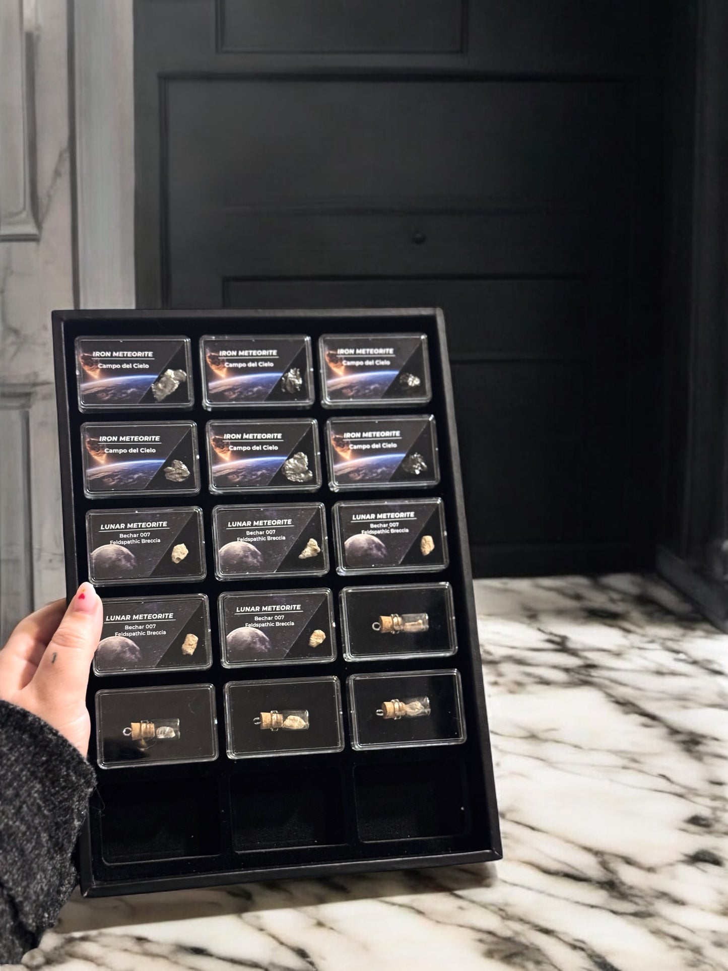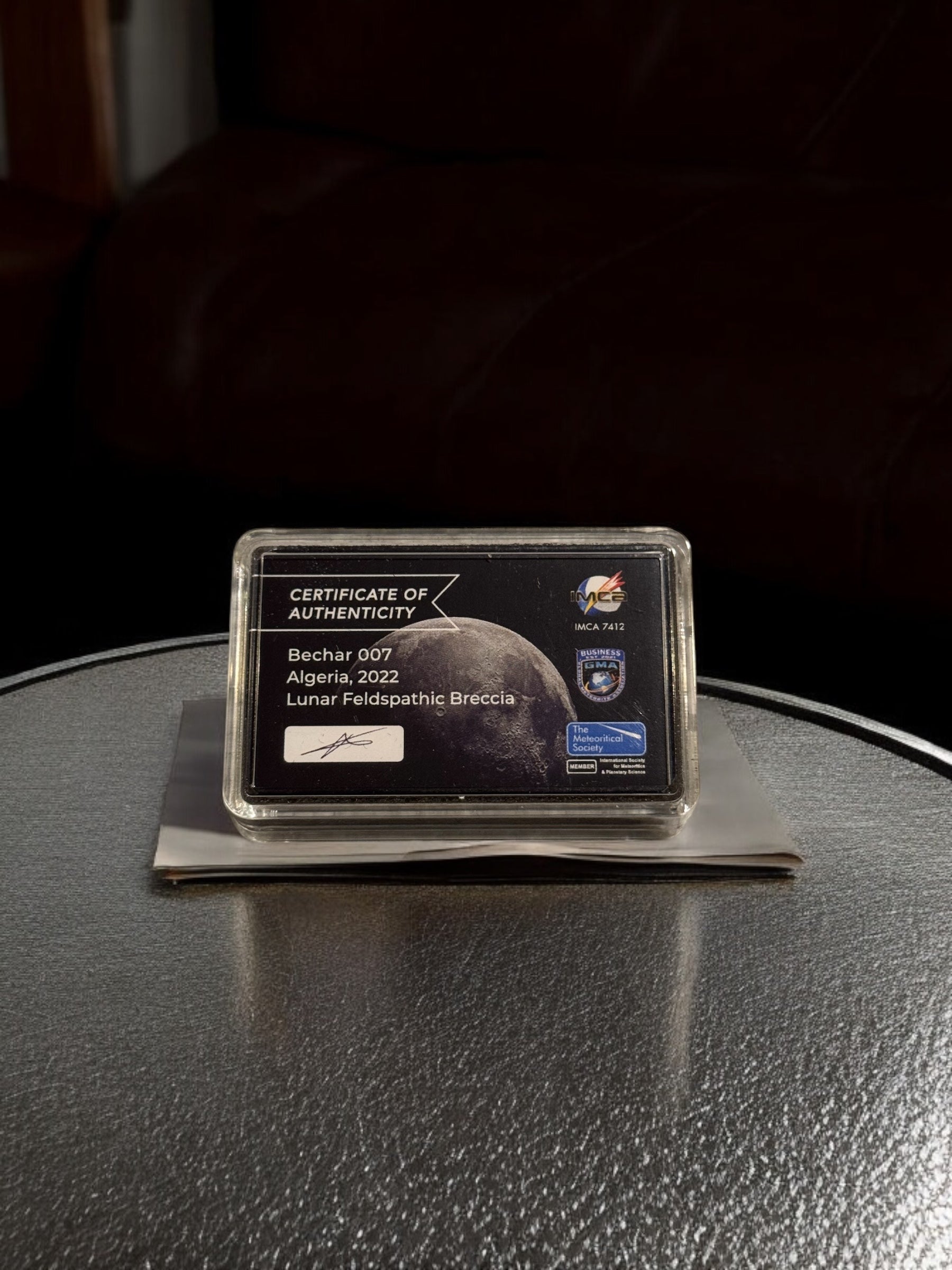 Cada uno de nuestros meteoritos lunares ha sido minuciosamente analizado y certificado por laboratorios especializados, garantizando su autenticidad y origen lunar. En un mercado donde las falsificaciones son comunes, ofrecemos la seguridad de adquirir una pieza 100% legítima y estudiada en profundidad.