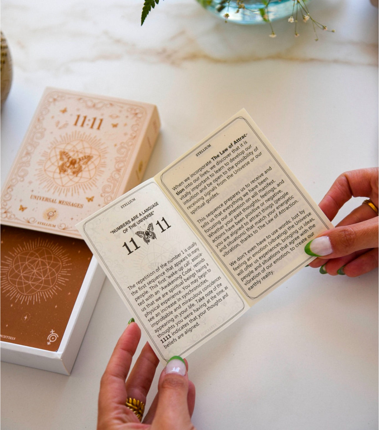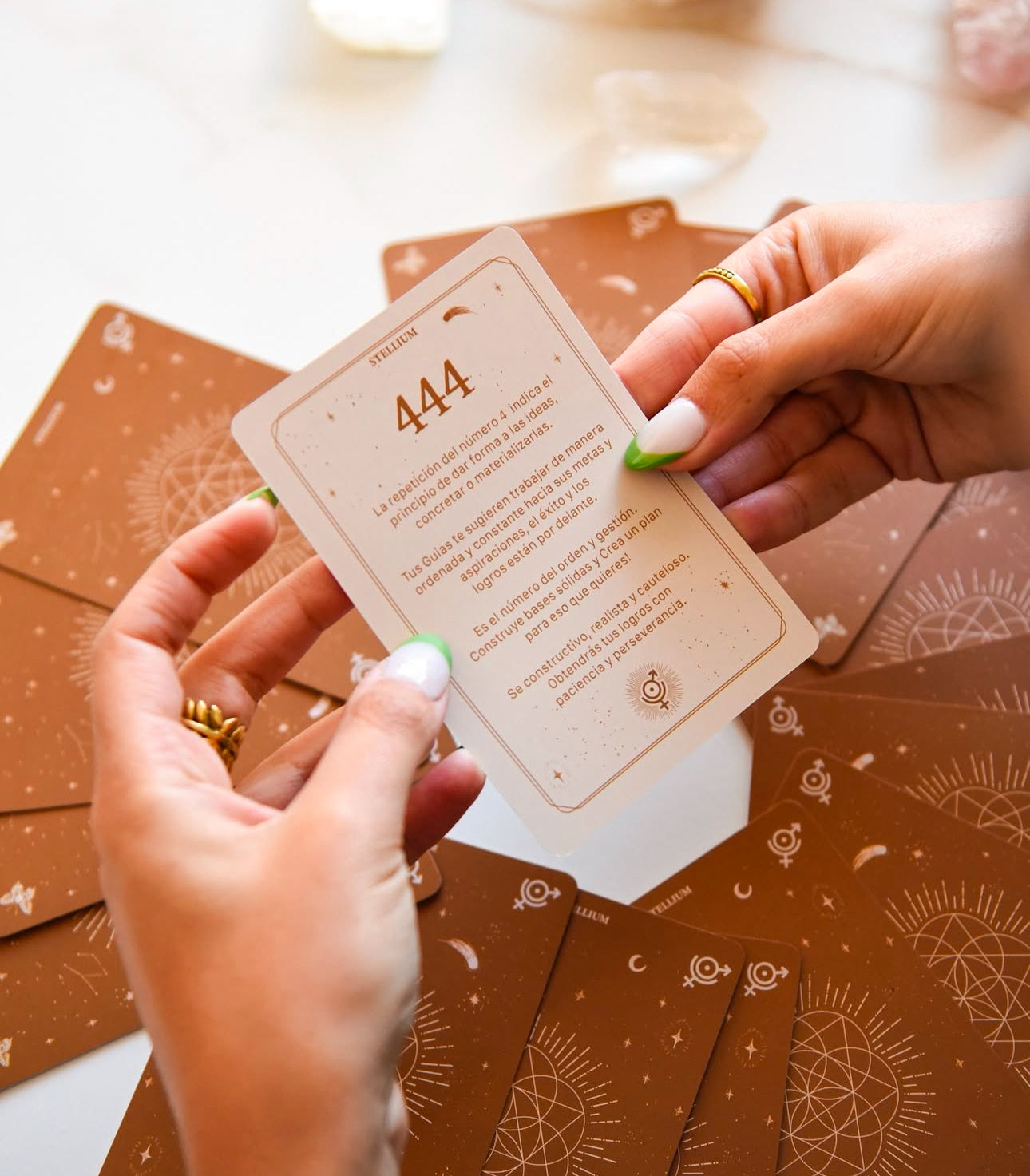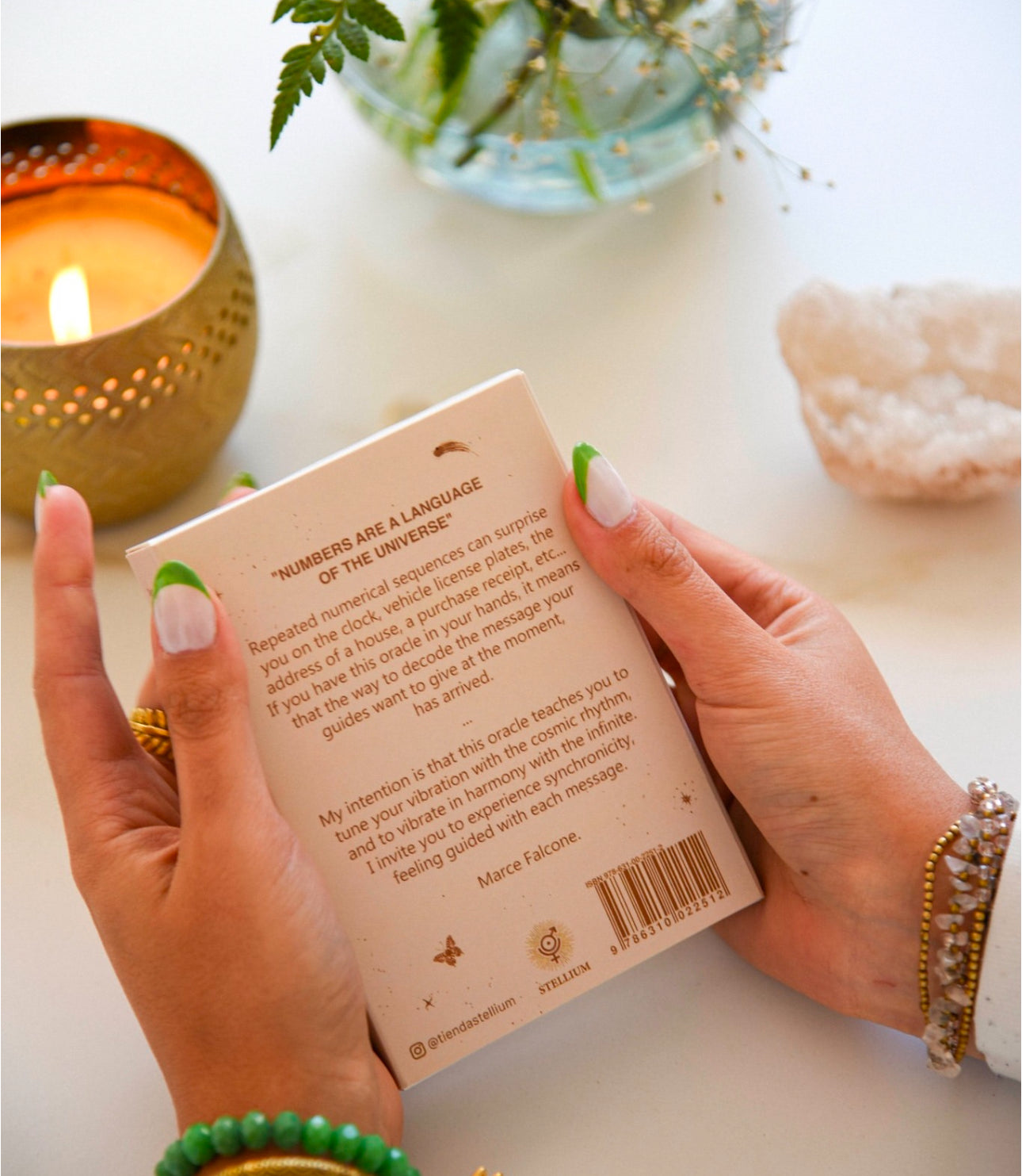 “LOS NÚMEROS SON UN LENGUAJE DEL UNIVERSO” Las secuencias numéricas repetidas, pueden sorprenderte en el reloj, patentes de vehículos, la dirección de una casa, un ticket de compra, etc... Si tienes en manos este oráculo, significa que ha llegado la forma de decodificar el mensaje que quieren brindarte tus guías en ese momento.