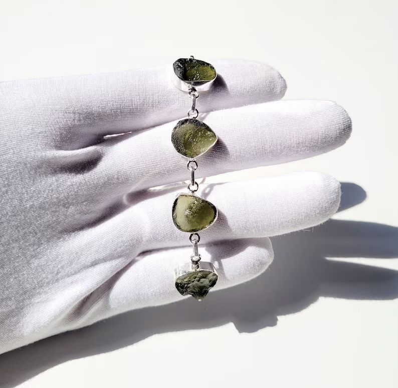 Pulsera de Moldavita plata de ley con (certificado de autenticidad)