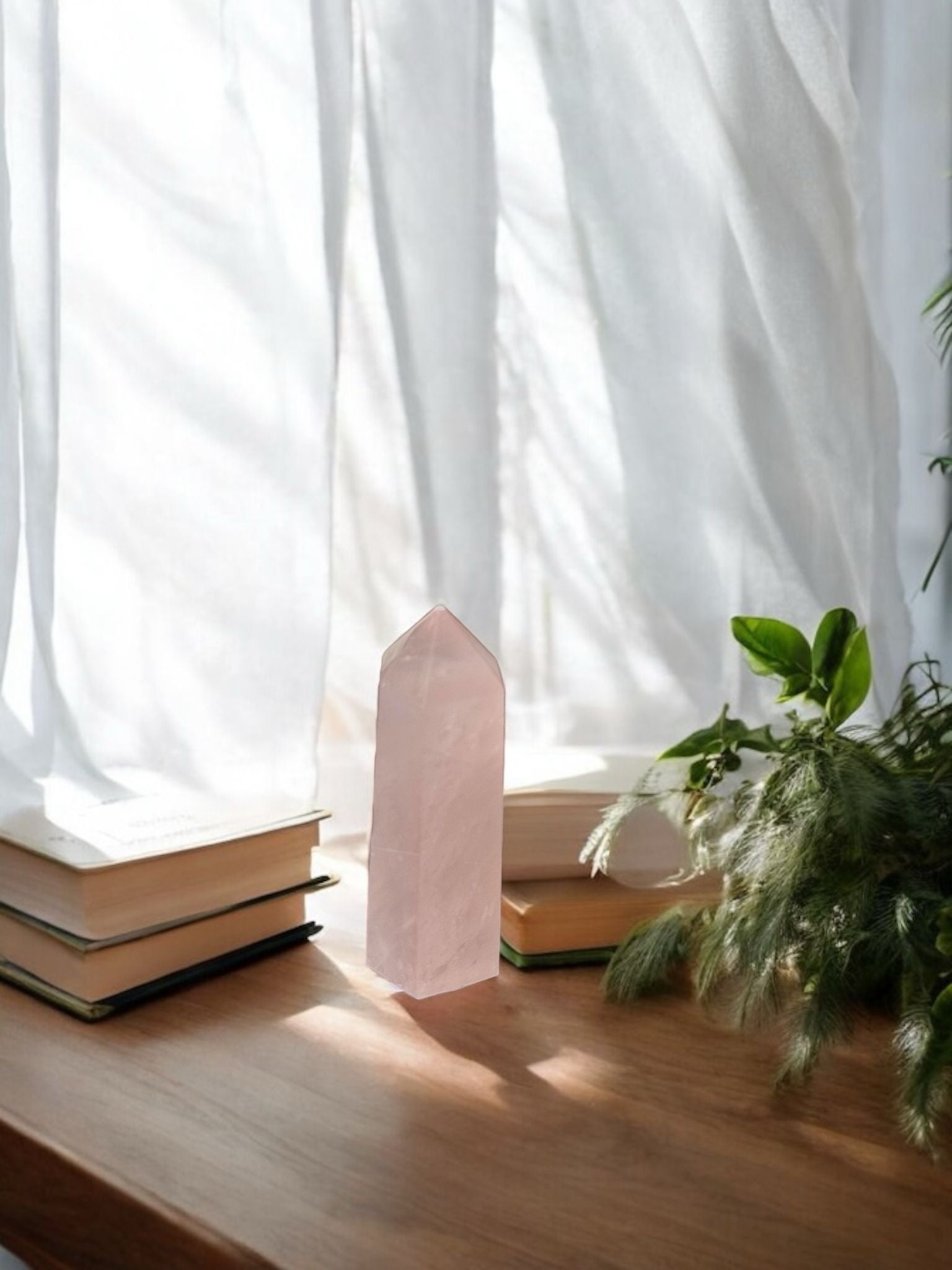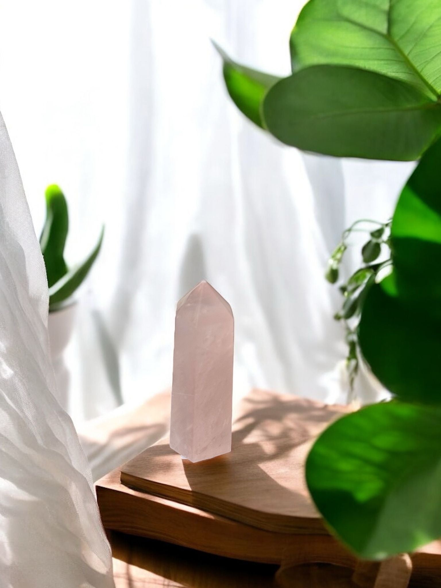 La punta de cuarzo rosa es una herramienta poderosa y amorosa que dirige la energía del corazón hacia donde más se necesita. Tallada en forma de punta, permite enfocar la vibración suave y curativa del cuarzo rosa para trabajar intenciones específicas relacionadas con el amor, la compasión, el perdón y la ternura.