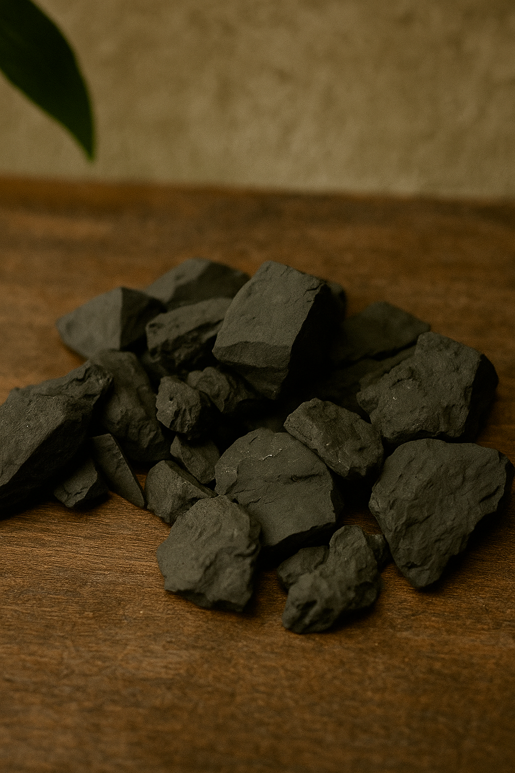 La shunguita en bruto es una piedra volcánica única, caracterizada por su color negro mate y su textura rugosa. Compuesta principalmente de carbono, se encuentra en depósitos naturales en Rusia y es reconocida por sus propiedades energéticas y curativas.