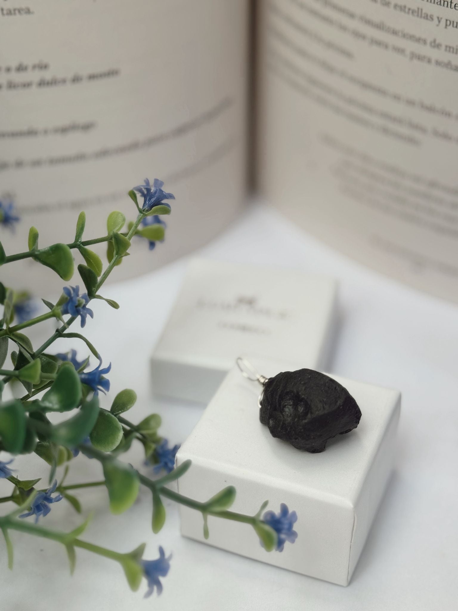Este colgante de tectita de meteorito es una pieza única y fascinante, hecha a mano con una piedra rara y misteriosa que proviene de los restos de un meteorito que ha caído a la Tierra. La tectita, con su característico color negro y textura vidriosa, posee una apariencia singular y cautivadora. Al estar formada por el impacto de un meteorito, esta piedra tiene una energía muy especial, que la convierte en un amuleto potente para quienes buscan conectarse con el cosmos y aprovechar las vibraciones de otras dimensiones. El colgante, montado en una delicada base de plata, no solo es un accesorio impresionante, sino también un talismán con propiedades únicas de protección y transformación.