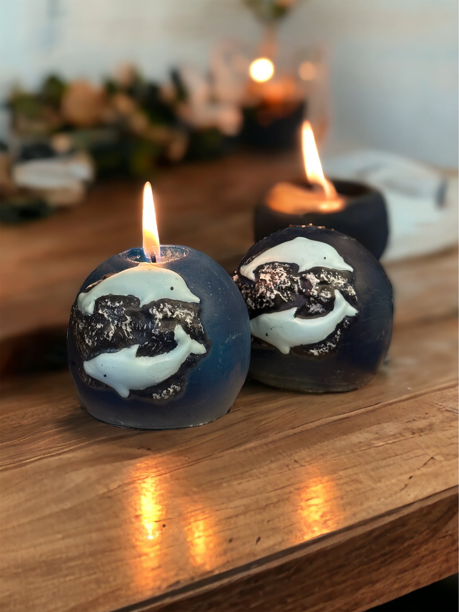 Cabe destacar que, al ser hechas a mano, cada vela puede variar ligeramente en su apariencia con respecto a las fotografías. Esta singularidad añade un toque especial, convirtiendo tu vela en una obra de arte única. A través de esta variabilidad, te invitamos a abrazar la autenticidad de la creación artesanal y a disfrutar de una experiencia única con cada vela. ¡Transforma tu espacio con la magia de la luna y la gracia de los delfines!