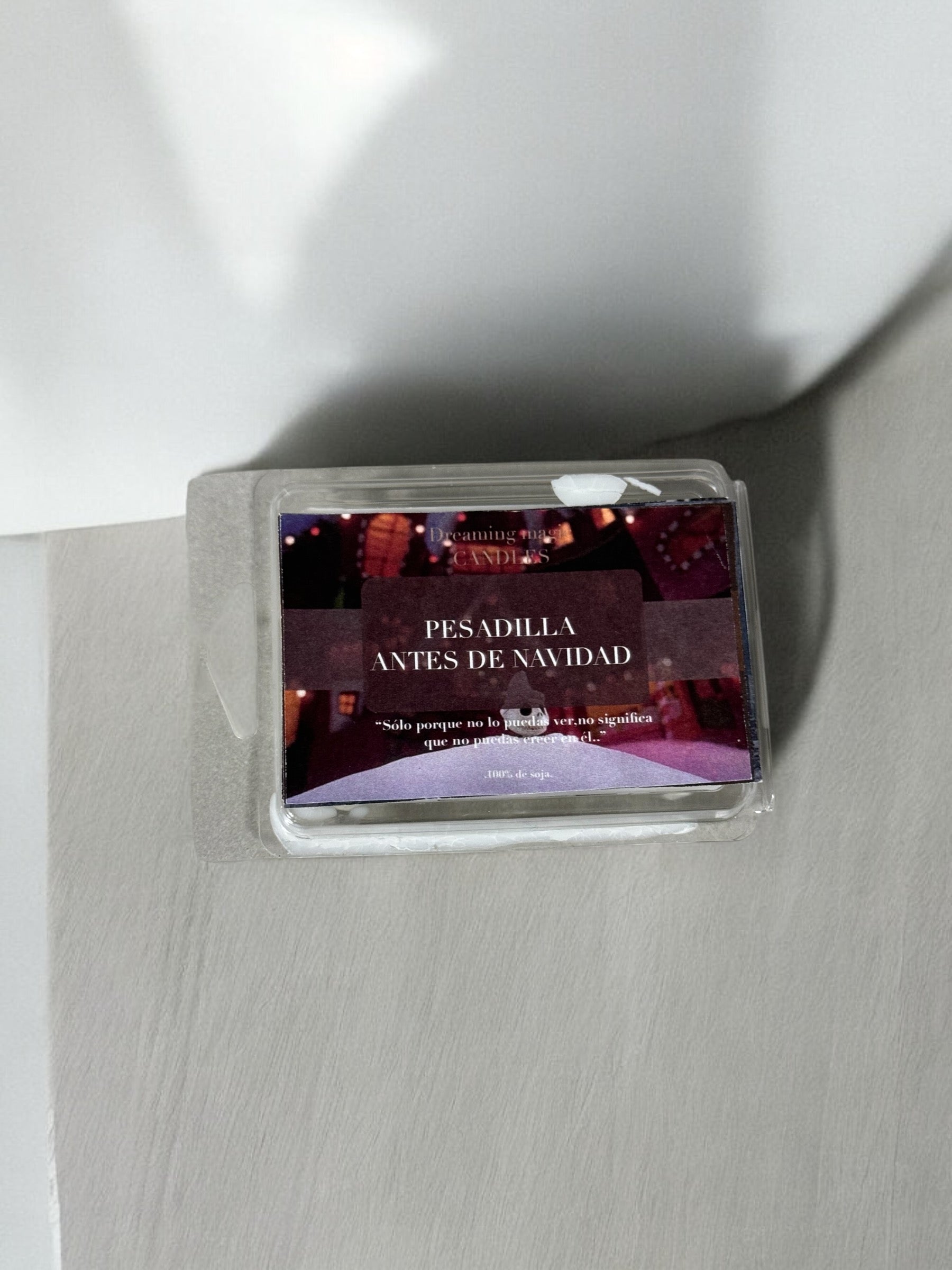 Dale un toque de magia oscura y festiva a tu hogar con Pesadilla antes de Navidad, un wax melt que captura la esencia de esa mezcla única entre lo misterioso y lo navideño. Con una intrigante fusión de notas de especias invernales, madera ahumada, y un toque dulce de azúcar moreno, esta fragancia evoca la atmósfera fantástica de un mundo donde lo macabro se encuentra con lo navideño. Ideal para quienes aman un toque de lo siniestro y lo encantador en sus celebraciones, Pesadilla antes de Navidad es la fragancia perfecta para una temporada navideña con un giro inesperado.